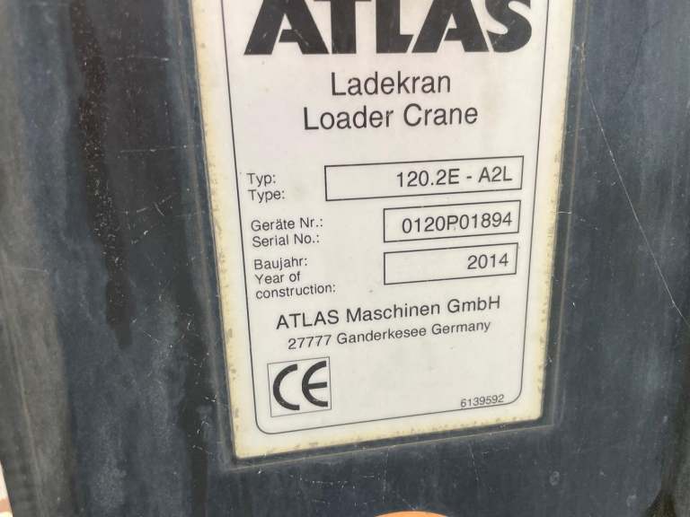 2014 Rear Mounted Terex Atlas 120.2E Crane c/w Hydraulic Stabiliser Legs, Remote Controls and Rotating Brick Grab Attachment.