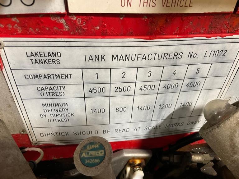 Lakeland Aluminium 20,000L Fuel Tanker Body C/w 5 Compartments And Front Mounted Hose Reel.