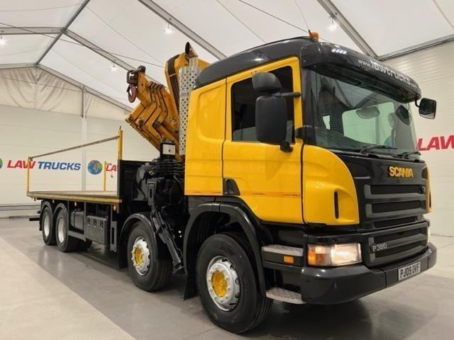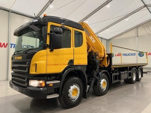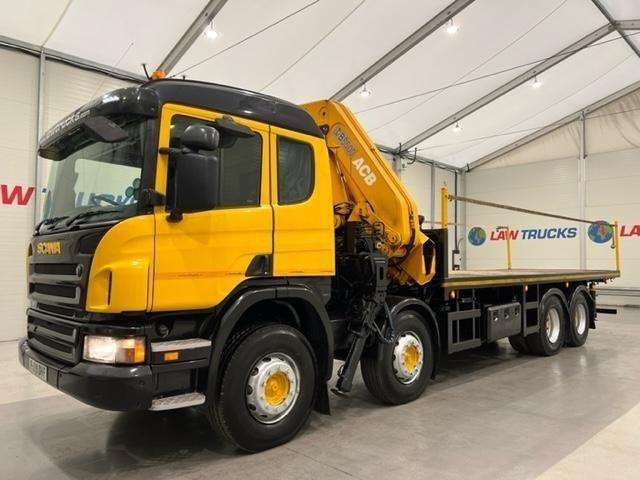 2007 Scania P380 8x4 Sleeper Cab Flatbed with Crane.