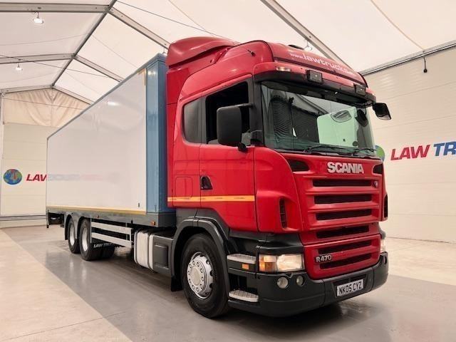 2005 Scania R470 6x2 10 Tyre Rear Lift Sleeper Cab Box Van.
