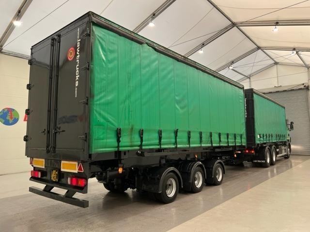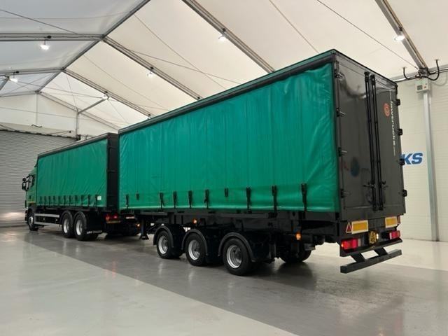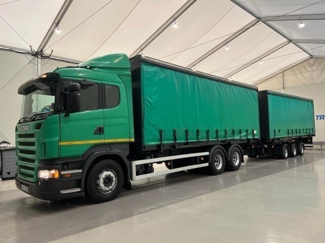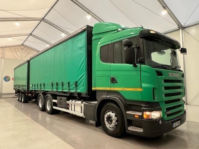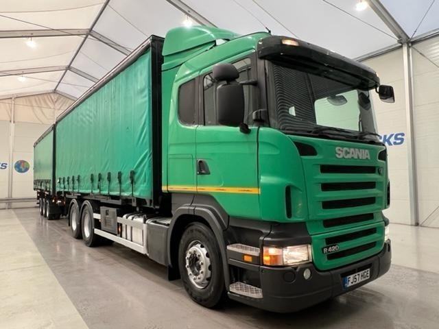 2007 Scania R420 6x2 10 Tyre Rear Lift Sleeper Cab Curtainsider with Tri Axle Curtainsider Drawbar Trailer.