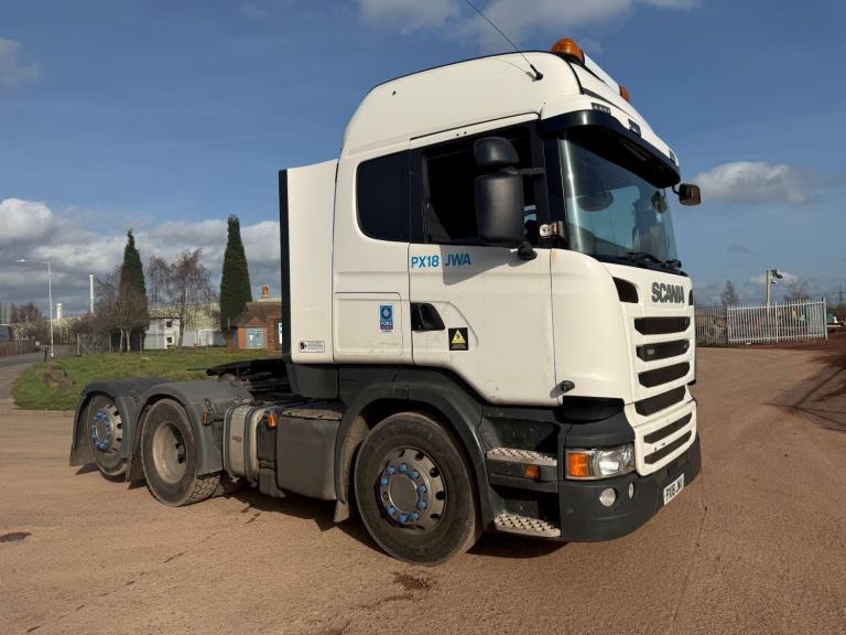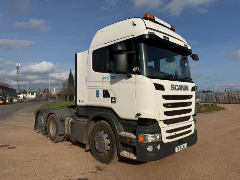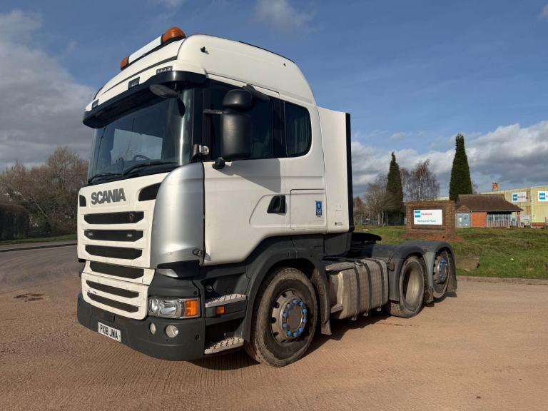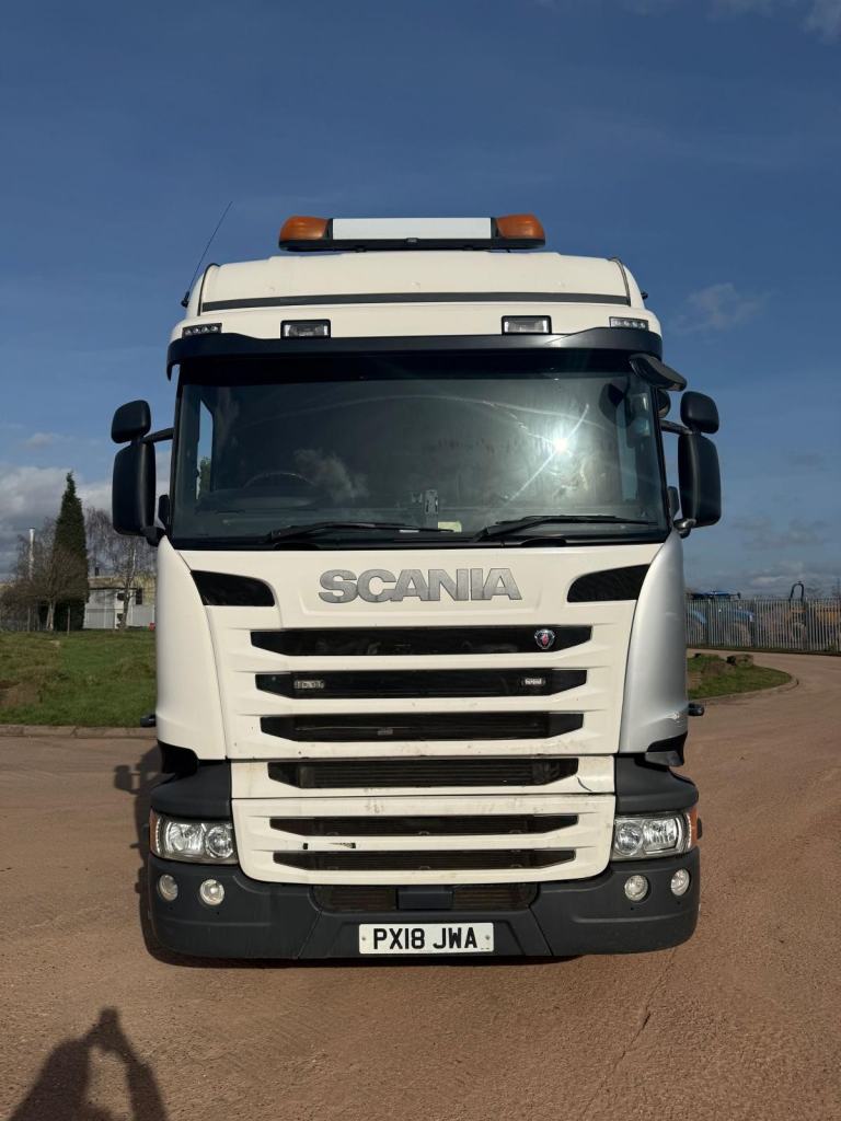 SCANIA R450 2018 (18) EURO 6, DOUBLE SLEEPER CAB, 6X2 TAG AXLE TRACTOR UNIT, FULL TIPPING HYDRAULICS, ALLOY WHEELS, BEACONS, AUTO GEARBOX, HEIGHT DETECTION SYSTEM, AIR CON, CRUISE CONTROL, SUN ROOF, SUN VISOR, FRIDGE, HEATED SEAT, PARROT HANDS FREE KIT, CD/RADIO, SWC, ELECTRIC WINDOWS AND MIRRORS, VERY TIDY TRUCK, EX OWNER DRIVER, TESTED APRIL 26, 515,000 MILES,