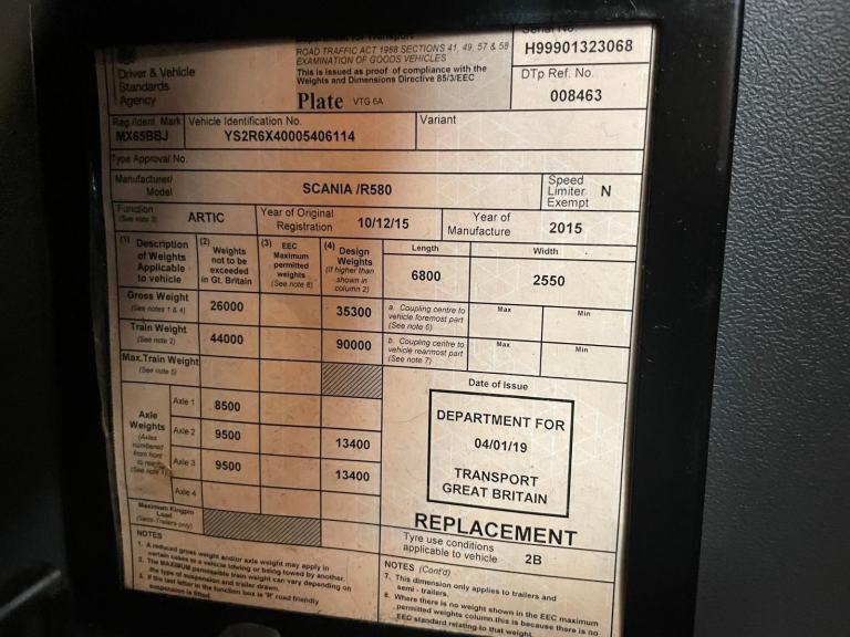 Posting for 3+ yearsSCANIA R580 V8 *EURO 6* 6X4 150 TONNE SPECIAL TYPES TOPLINE TRACTOR UNIT