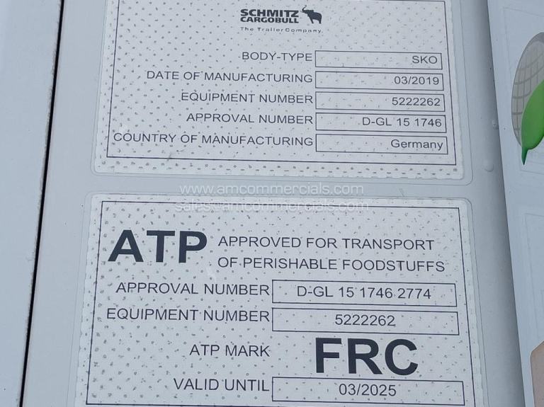 2019 Schmitz Cargobull MONO-TEMP, Fridge Trailer, Tri Axle, Disc Brakes, Jost Landing Legs, Side Guards, SLXi 300 Fridge Unit, HALDEX Braking System & Raise/Lower Valve, Rear Barn Doors, 2.6M Internal Height, 2.5M Internal Width, Great Condition, MOT 30th November 2026, 12,006 HRS, Finance Available Subject to Status.