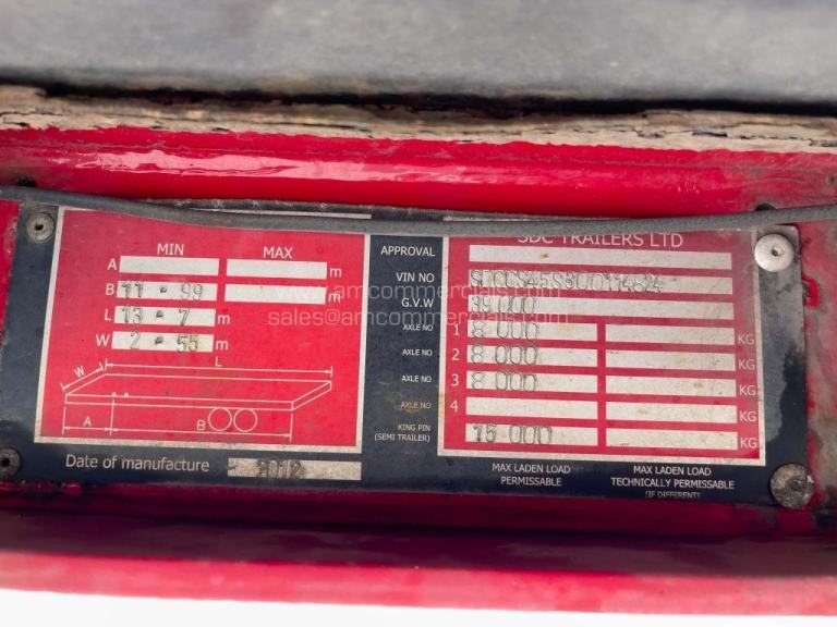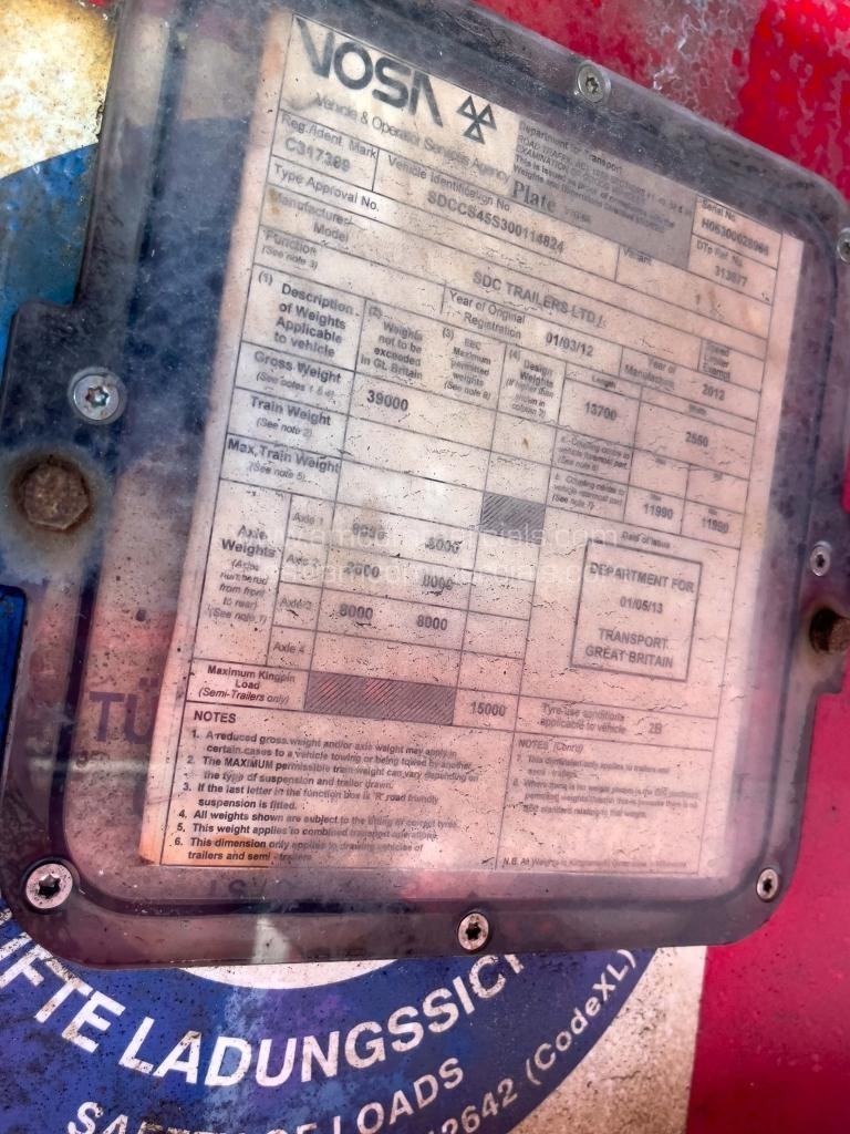 2012 SDC Curtain Side Tri AxleTrailer, 2930mm Rear & Side Loading Heights, SAF Axles, Drum Brakes, JOST Legs, Load Restraint System. Finance Available Subject to Status.
