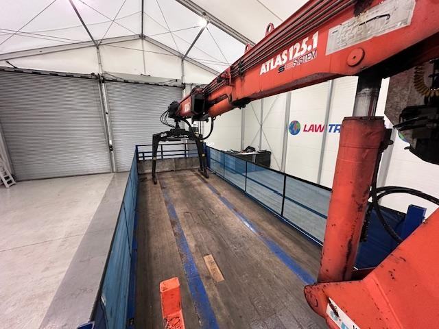 2015 SDC Tri Axle Flatbed Trailer, Atlas Terex 125.1 Top Seat Brick Grab Crane.