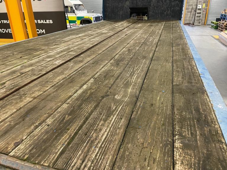 26Ft Flatbed/Beavertail Body C/w Wood Plank Flooring, Lashing Bar And Raised Headboard.