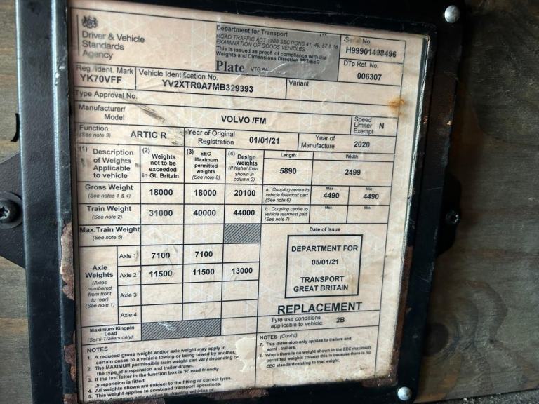 Posting for 9+ yearsVOLVO FM *EURO 6* GLOBETROTTER 4X2 TRACTOR UNIT 2021 – YK70 VFF
