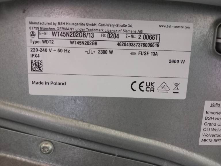 Siemens iQ 300 ‘WT45N202GB’ Condensing Tumble Dryer for sale.
