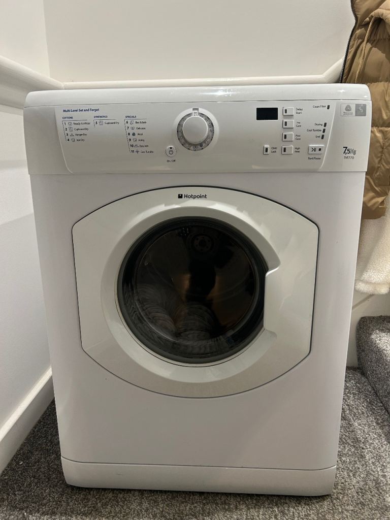 I have this Hotpoint tumble dryer tcm580 8kg for sale. It works but doesn't heat up. I suspect that the heating element needs replacing (the heating element is available to purchase on ebay for £15) it is not a hard job for DIY. I don’t use it anymore therefore is for sale.