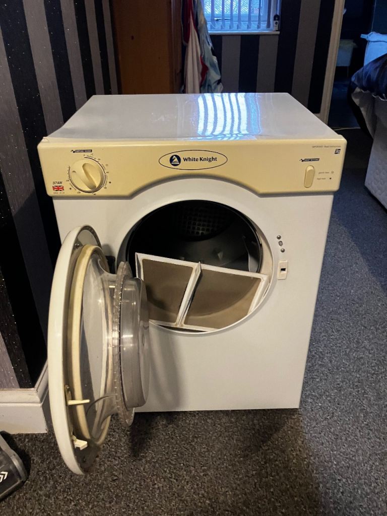 Hello there I am selling a white knight dryer 3kg as little crack on Corner where someone put something on top of the but dose not stop it from drying and dryer heats up quickly and this all in very good condition and in excellent working order and in fully working order so bag a good bargain this year at £65 bargain and can deliver for a small charge so take a good look at the photos and feel free to ask any questions and feel to txt or ring me on my number with thanks