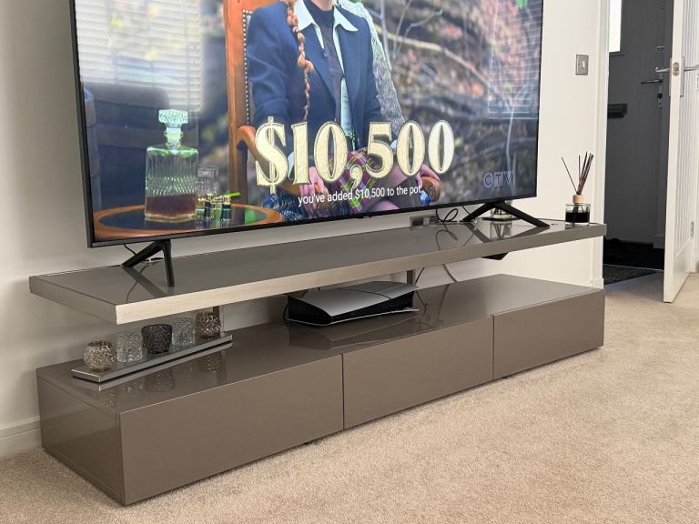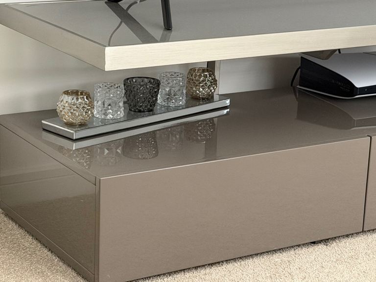The Magro features a steel-framed, floating shelf which rises above ample size drawers, offering great storage for DVDs and games. This contemporary TV unit brings a sleek look to your living room.