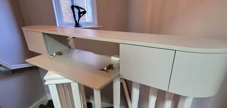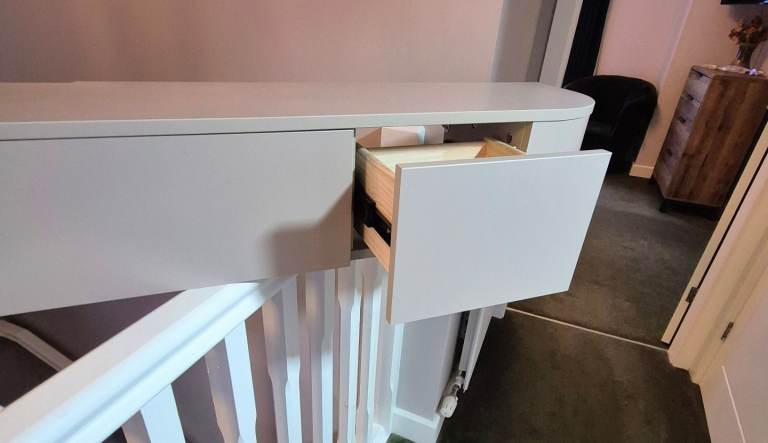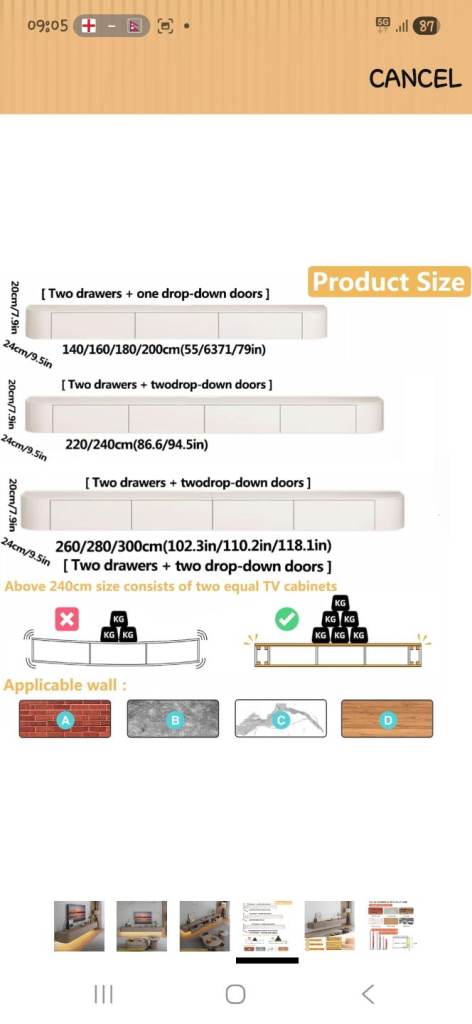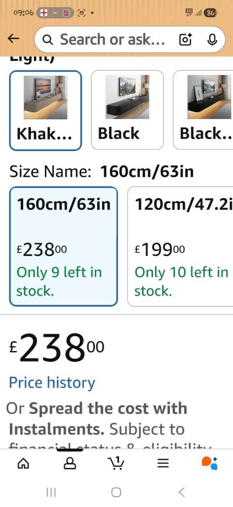 Brand new wall mounted media unit. Paid £258 on amazon with delivery only last week. Slightly to big for the space intended and to much hassle to return. Lovely led light built in. Advertised as khaki but it's more a taupe/grey colour.
