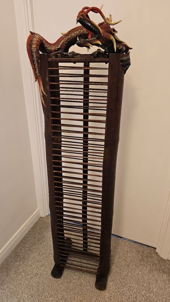 For sale hand made cd / dvd stand bamboo with dragon on top