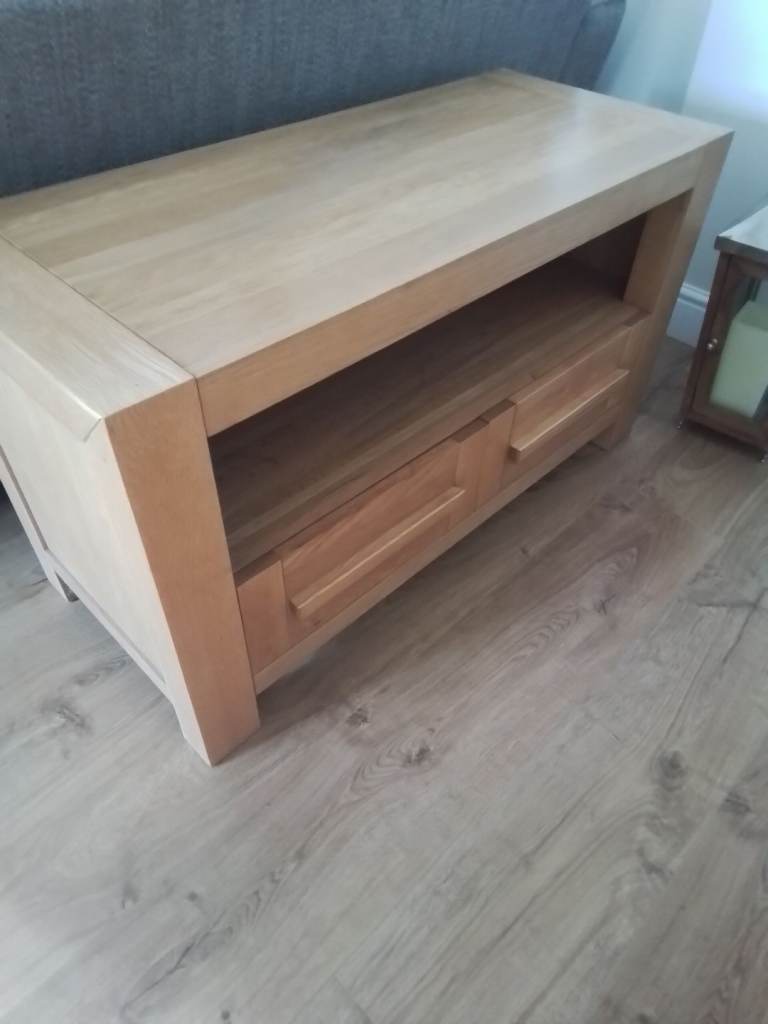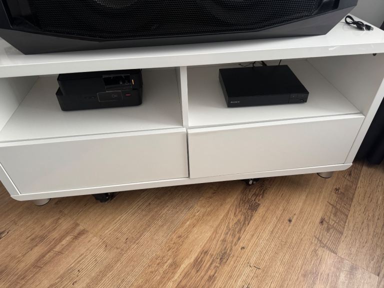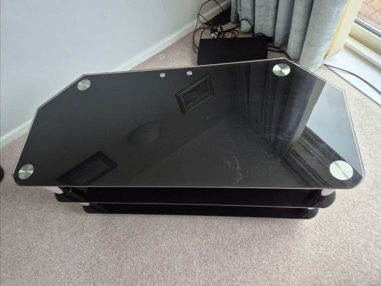 In good but used condition, there are some marks/scratches on the shelevs but generally covered up by the TV once in place. It is quite heavy.