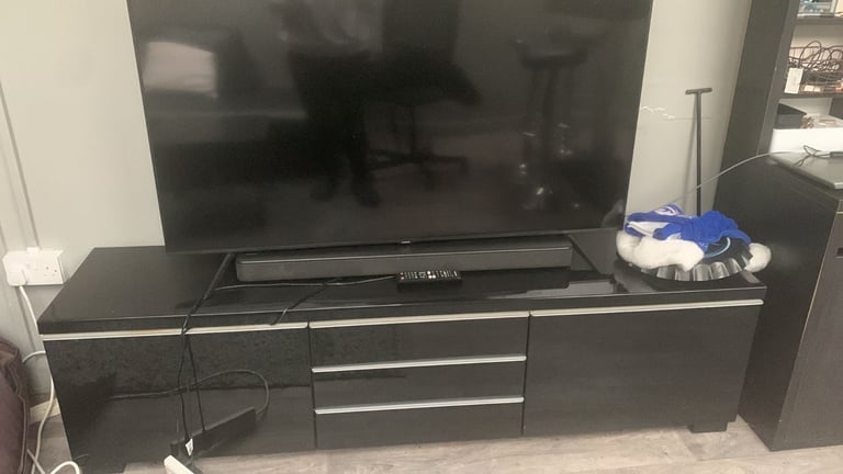 Black gloss tv stand , 180 x 42 x 49, very heavy and long