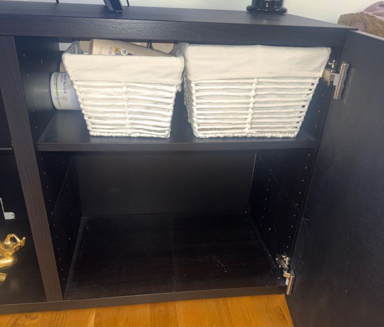 Posting for 4+ yearsBlack tv unit with storage