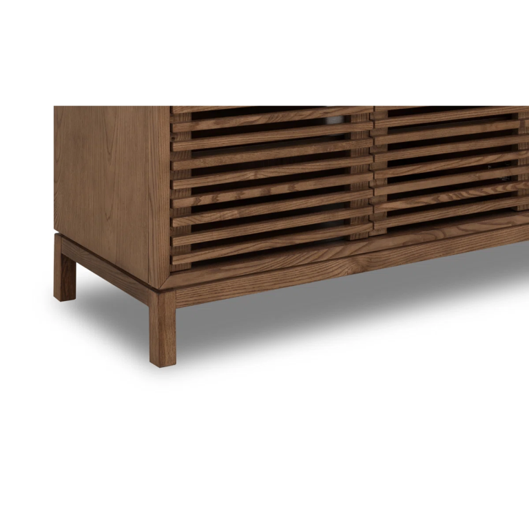 Crafted with solid wood and wood veneer, featuring an elegant slatted front that brings texture and calm to modern interiors.