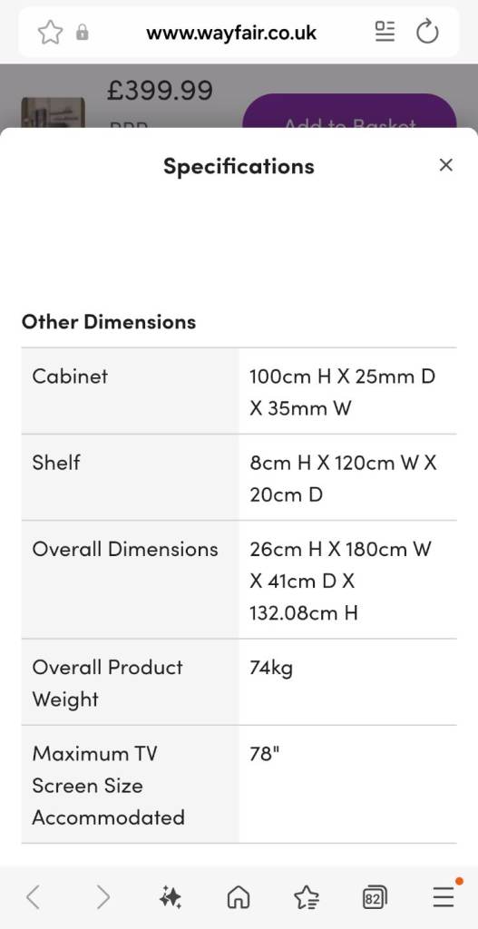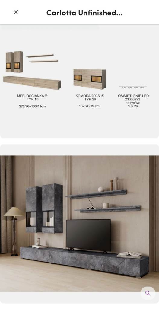 6 in 1! - The entertainment unit contains a TV stand, which consists of two separate pieces that can be placed side by side or customized to fit the needs of the room, two wall cabinets, and two shelves. All dimensions you can see on one of the images.