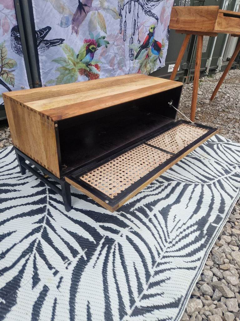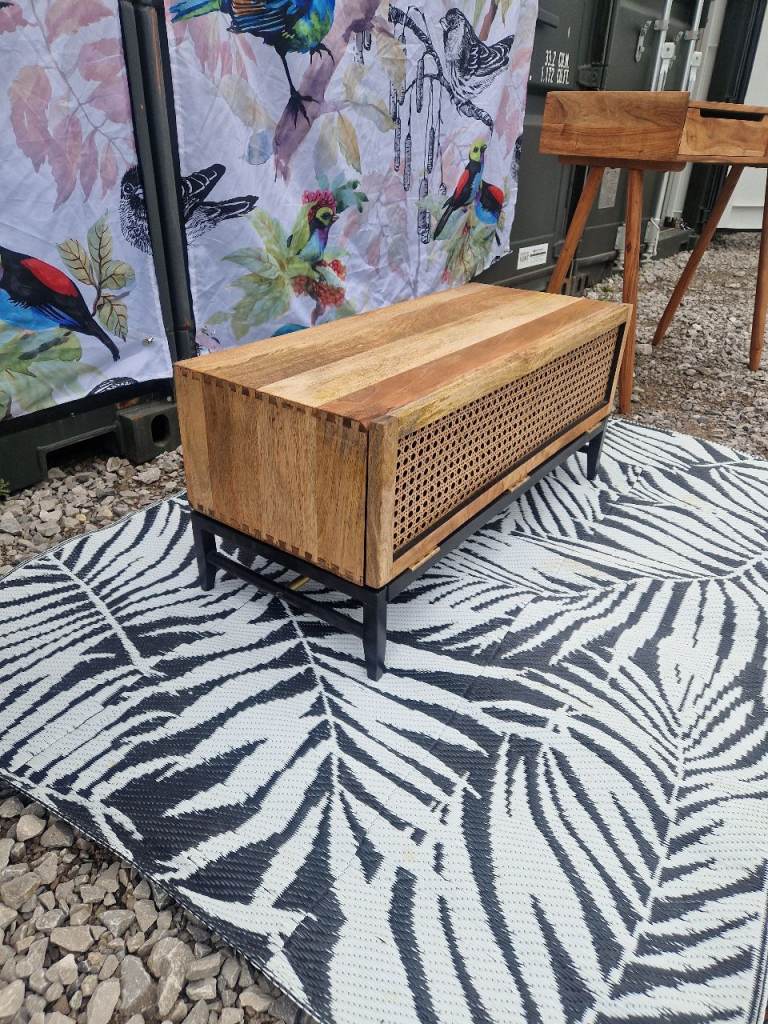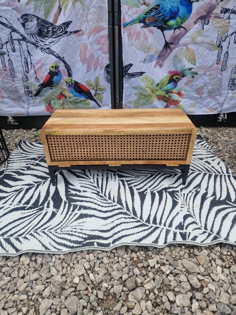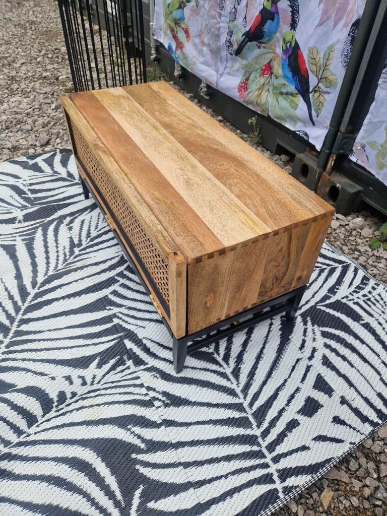 Custom Swoon Raphia Media Unit TV Stand, Mango Wood & Natural Rattan Unique