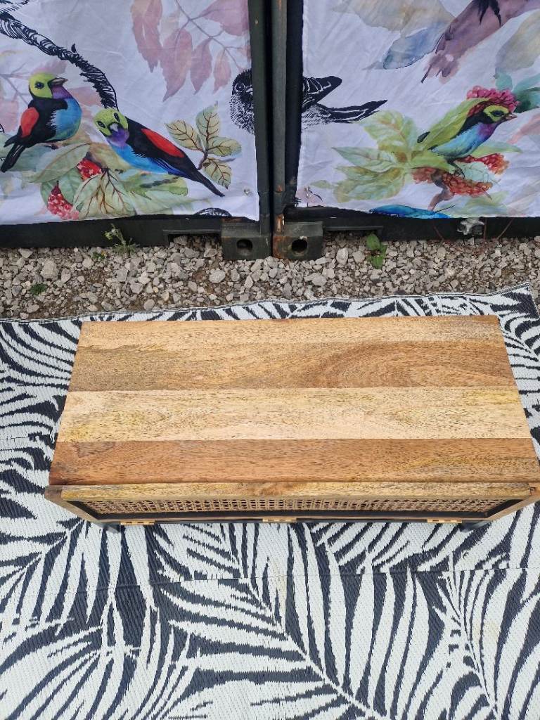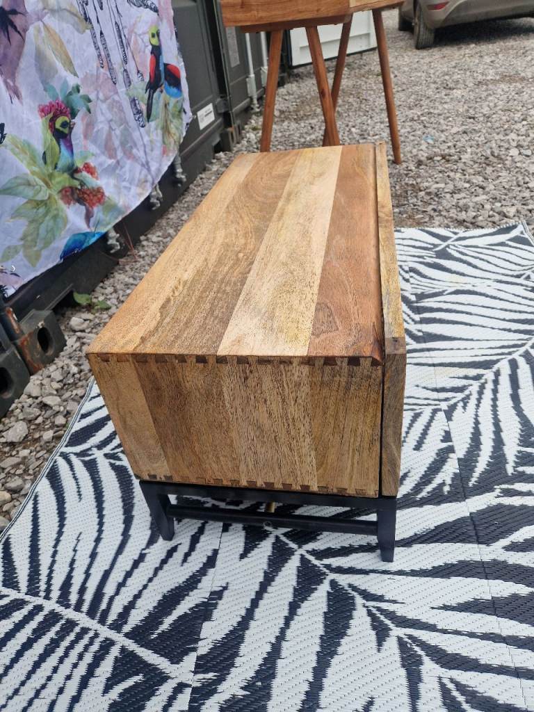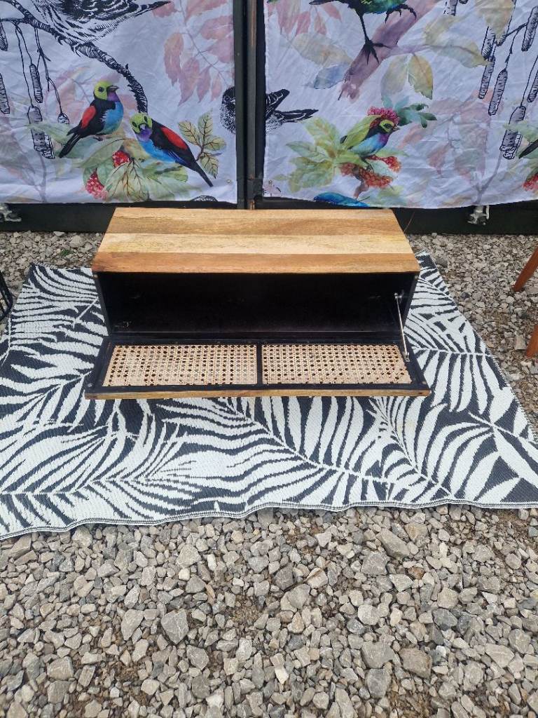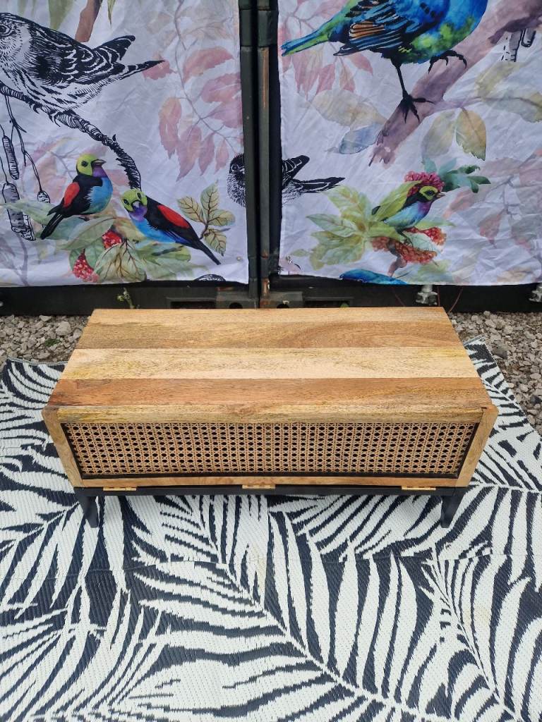 Custom Swoon Raphia Media Unit TV Stand, Mango Wood & Natural Rattan Unique