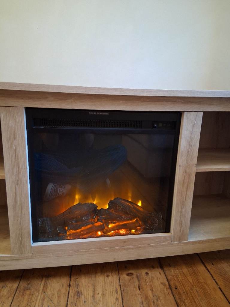 Fully functioning tv stand with fireplace effect.