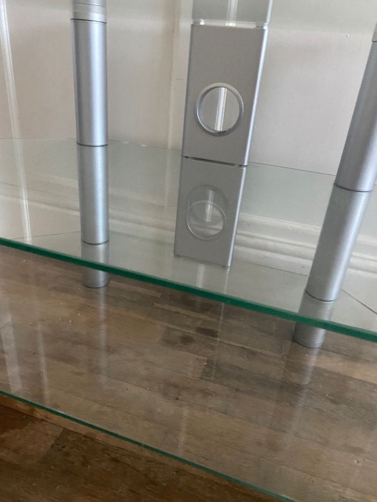 Glass and metal 2 1/2 Ft Wide Tv stand