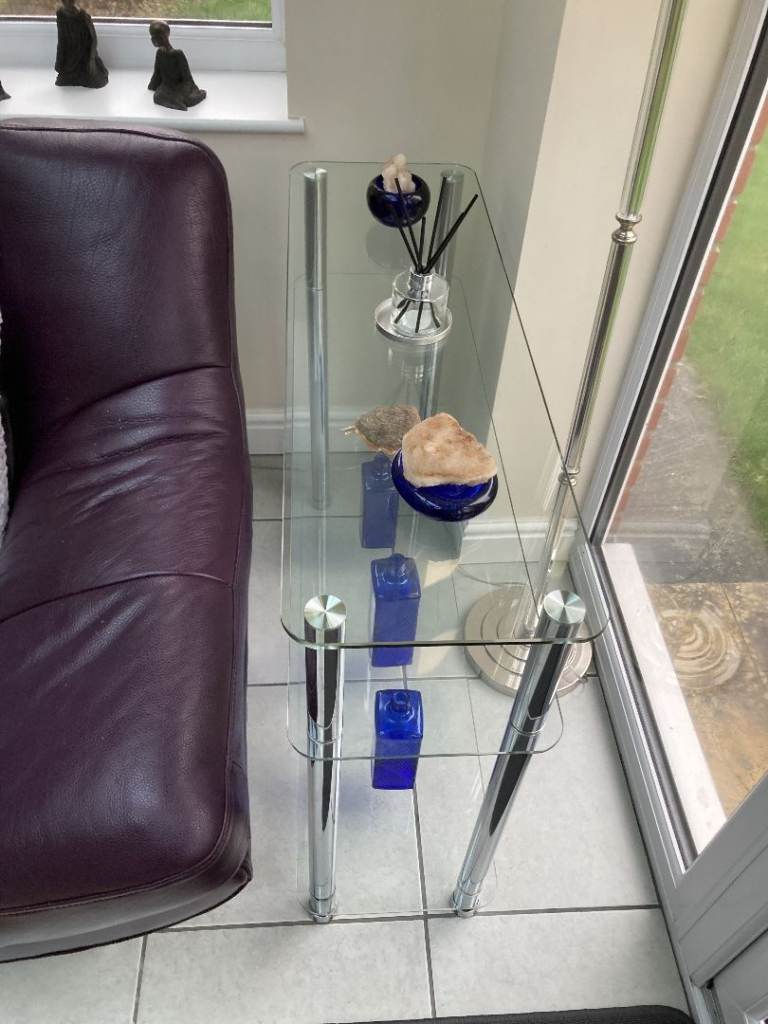 Glass Shelves - May be used as a TV stand or a coffee table - Ornaments not included :-)