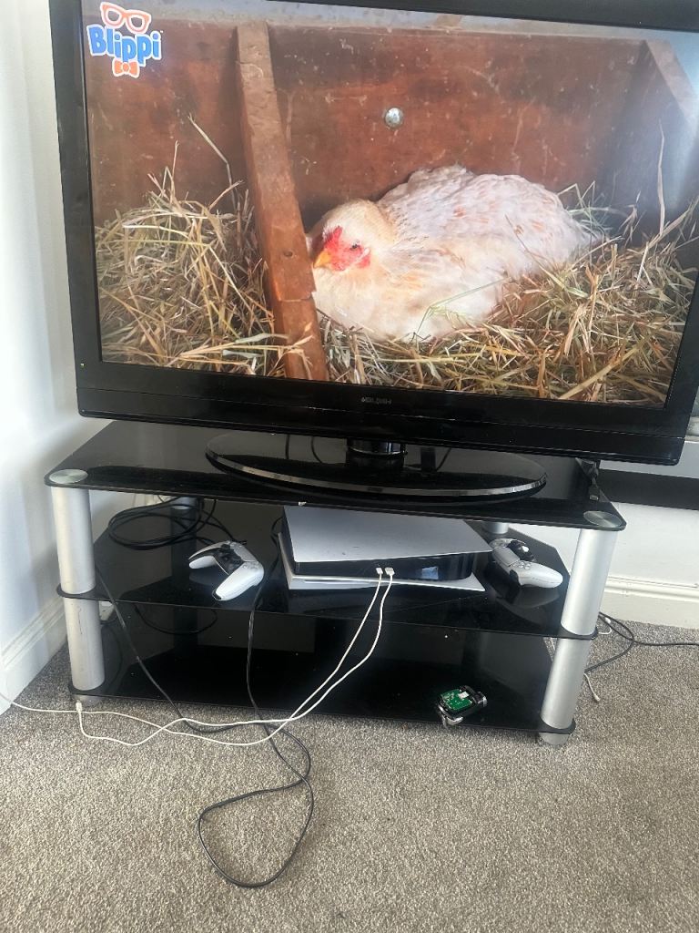 Glass tv stand/unit. This is like new with afew surface scratches on the glass top (see last two pictures)
