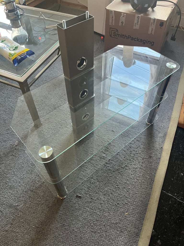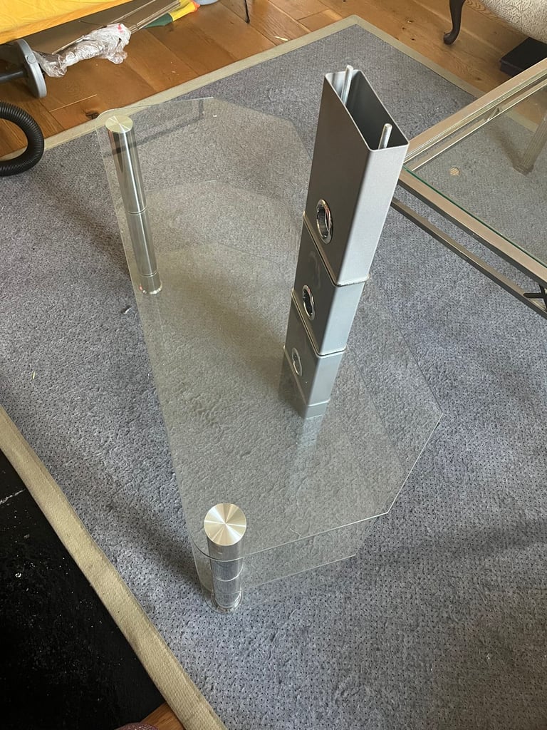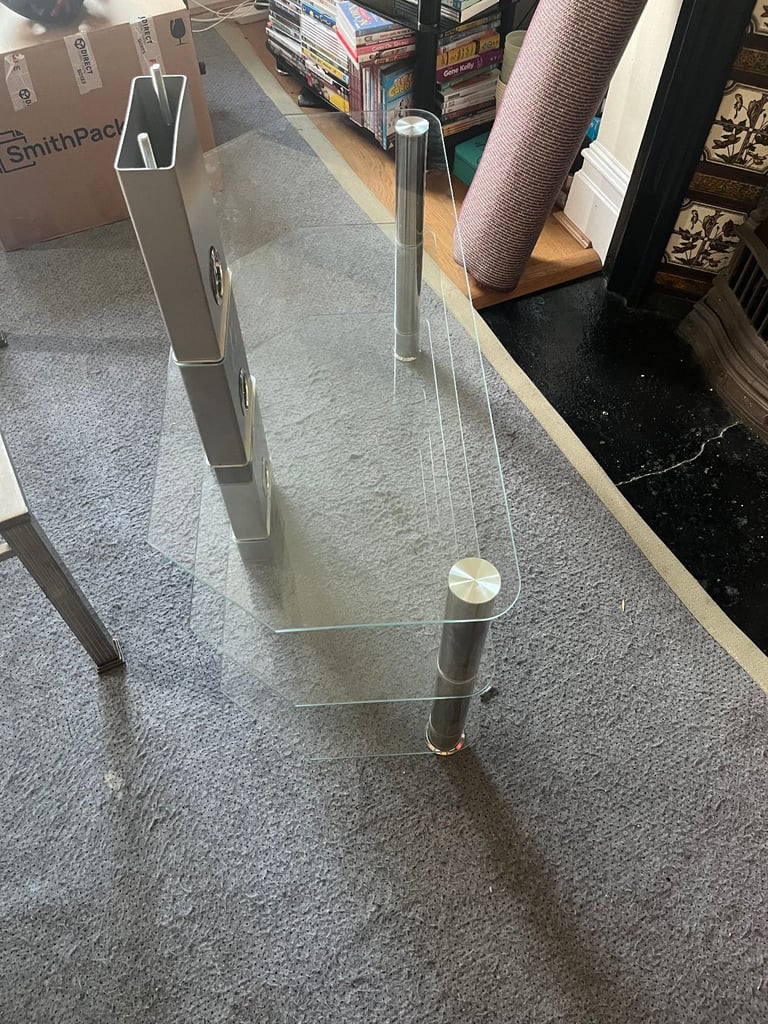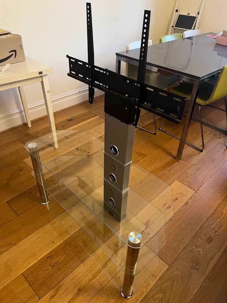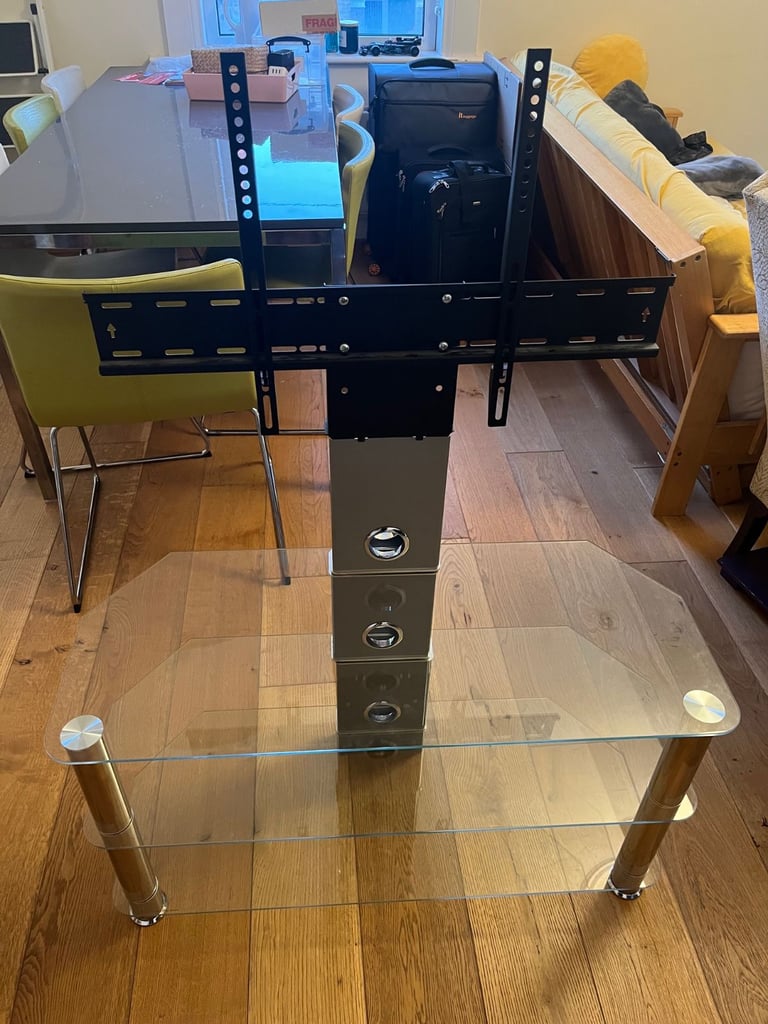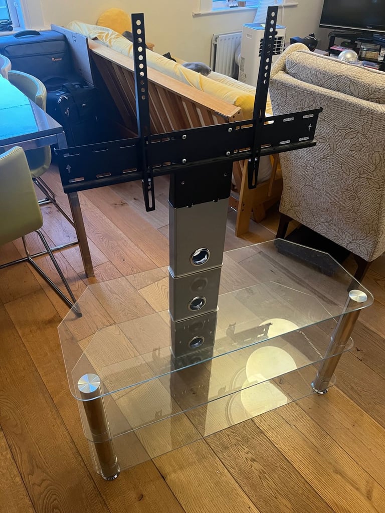 We no longer need this so we've decided to sell it. It comes with a detachable black bracket, for use if your TV can be wall-mounted. Pics show with and without the black bracket attached. Dimensions below.