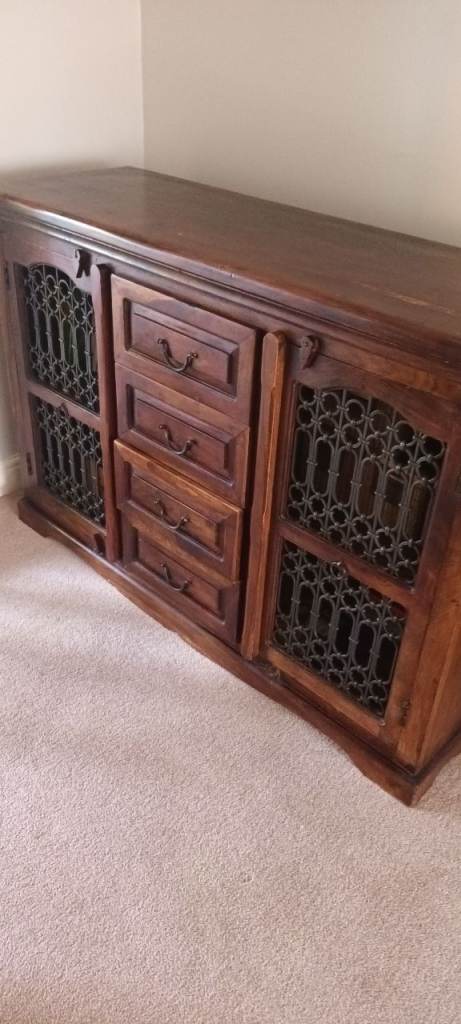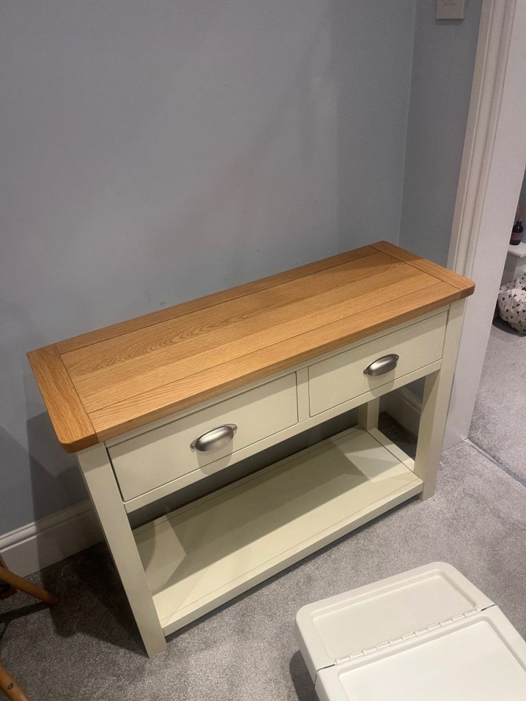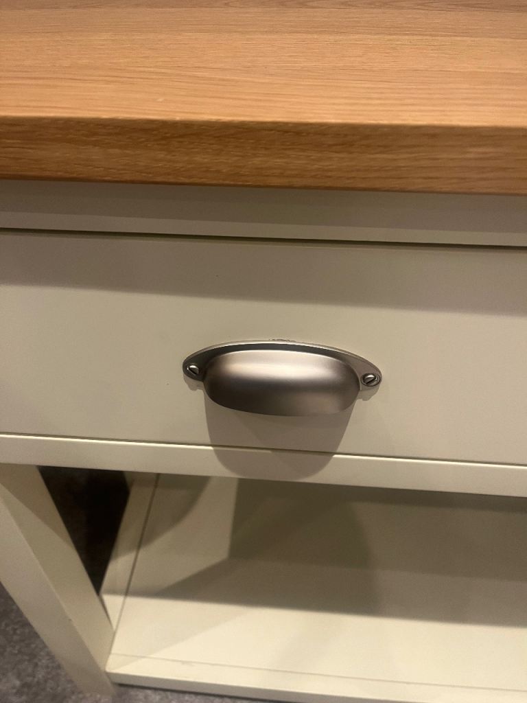 Solid Cream and wood unit with 2 good draws and a base. Has multiple uses.