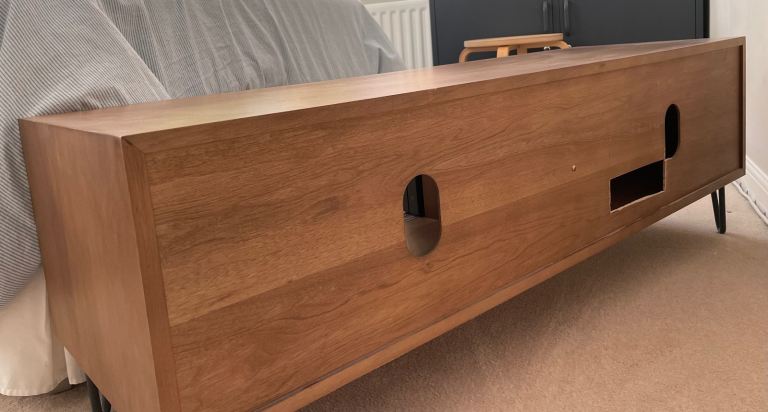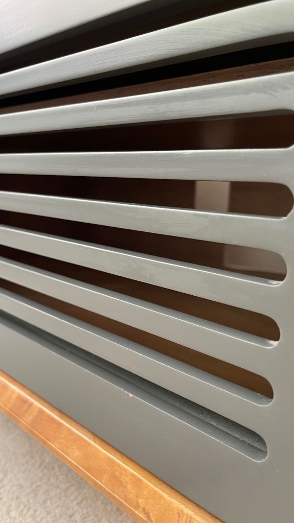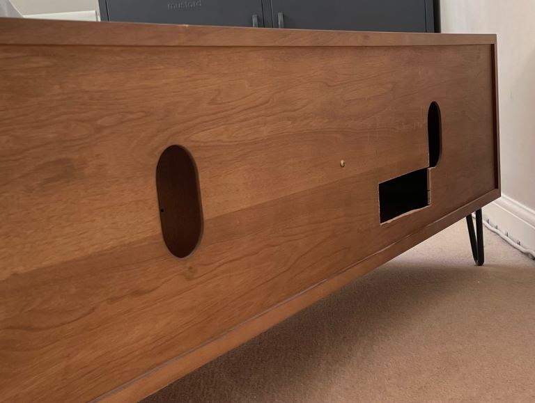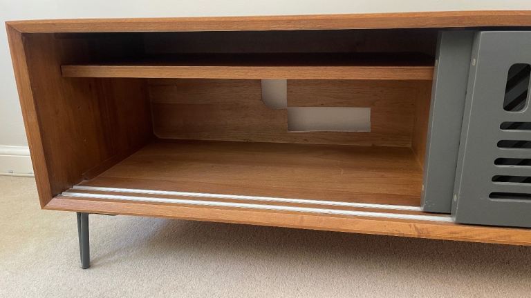 In great condition but i previously had to cut a section from the back (evident in photos) in order to allow cable to fit through. Not evident when doors closed.