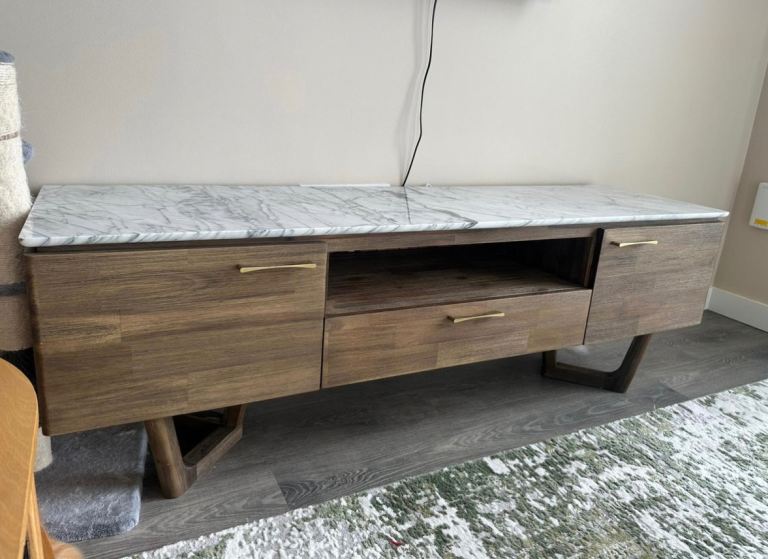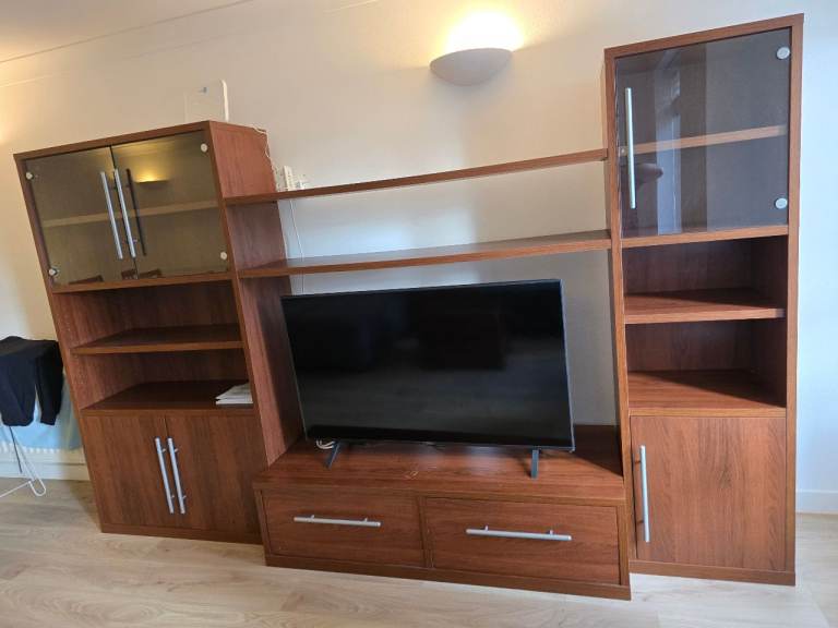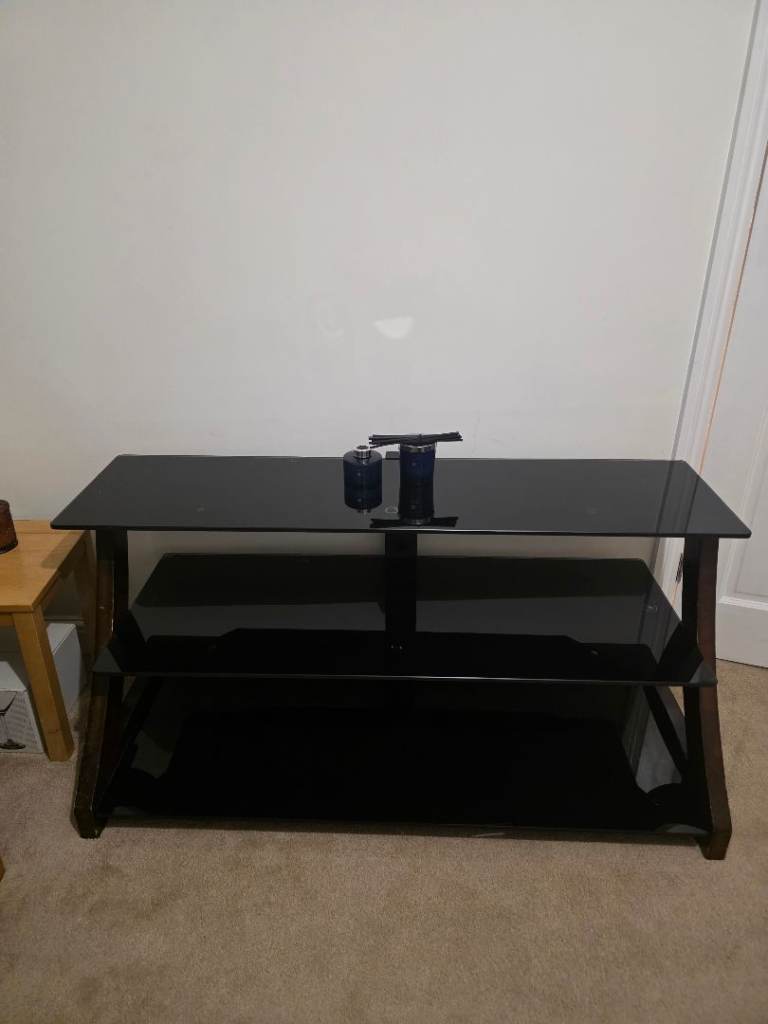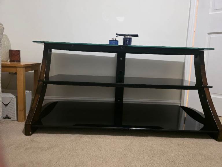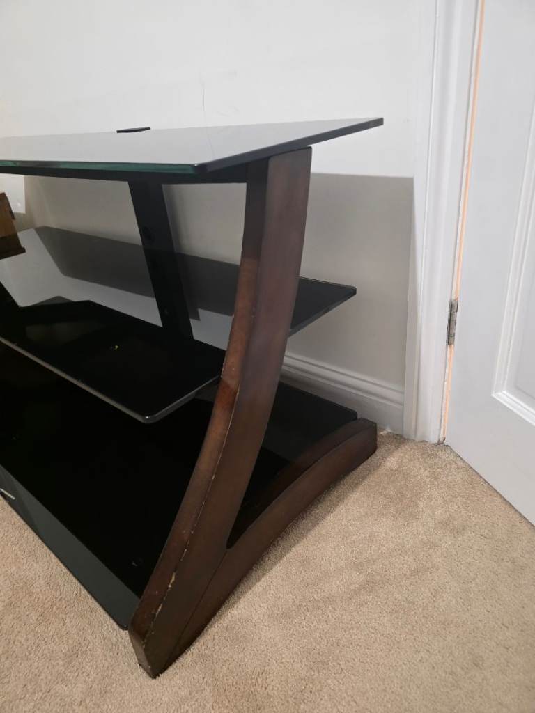 Posting for 5+ yearsModern Glass TV Stand / Media Unit – Black Glass & Wood