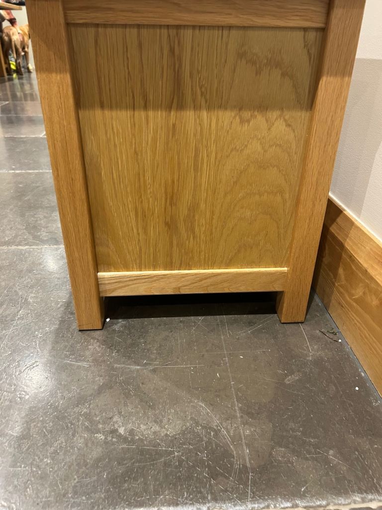 It is in excellent condition, no damage, marks or anything. It is made of solid oak.