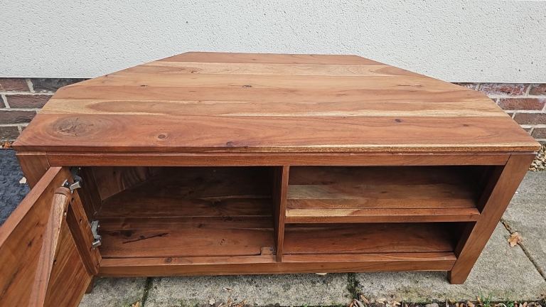 Next Amsterdam solid acacia wood corner tv stand it’s in good clean sturdy condition it’s very heavy and solid. No damage there is the odd light general wear mark. I also have the matching sideboard for sale. It’s 114 cms wide 52 cms deep and 52 cms tall. We can deliver single items for an extra £7.50 anywhere within Newport or Cardiff. Collection can be made from Malpas Newport NP20.