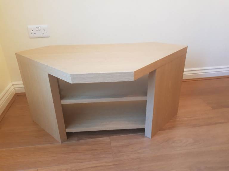 Light Oak tv corner unit, in very good condition. This is a solid unit which was bought from next. Light wood oak in colour. Buyer to pick up from skewen area.