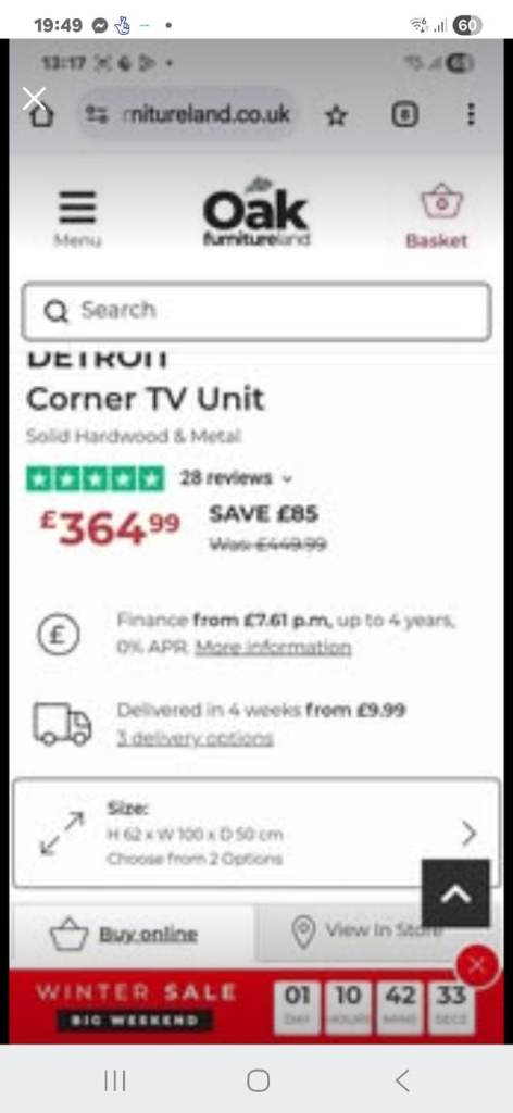 Oak TV unit from Oak Furniture Land Detroit range. Currently on sale online and in Speke store for £364.99 reduced from £449.99. Looking for just £60.00. Collection from Aintree Merseyside, may deliver.