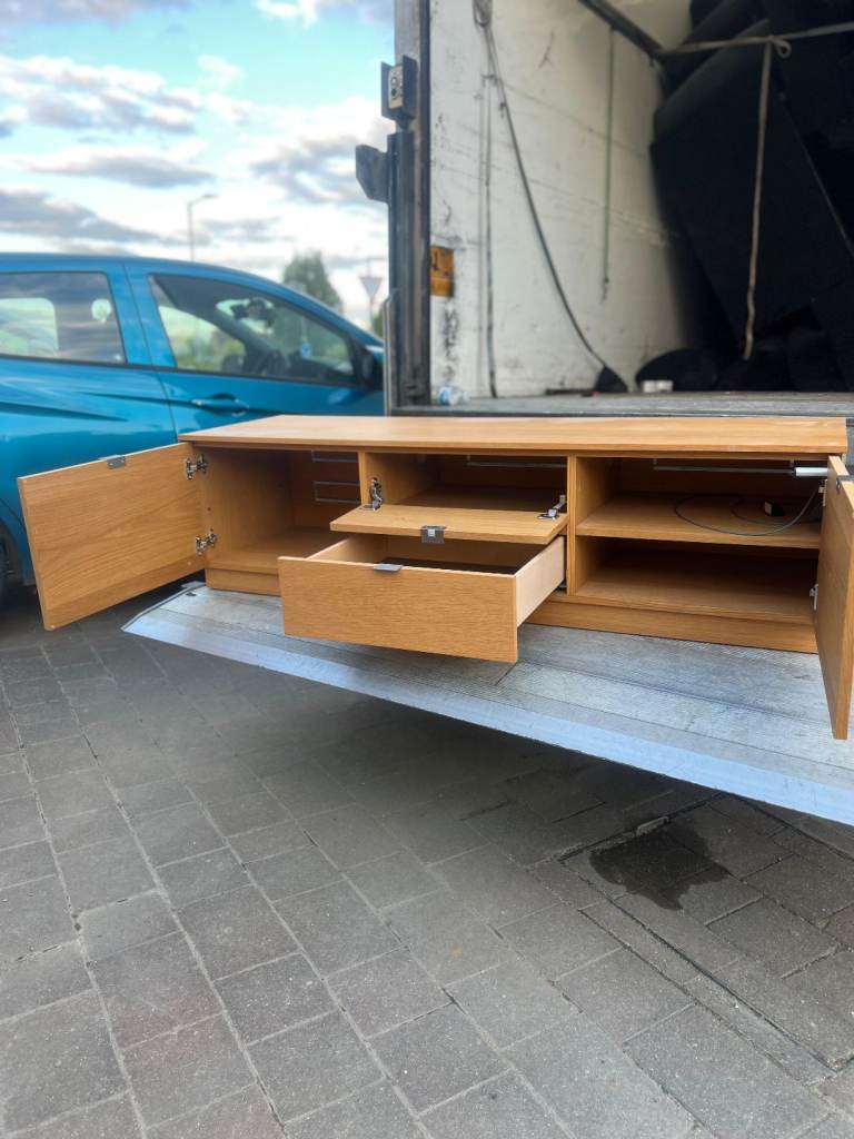 Posting for under a monthOak wood TV stand