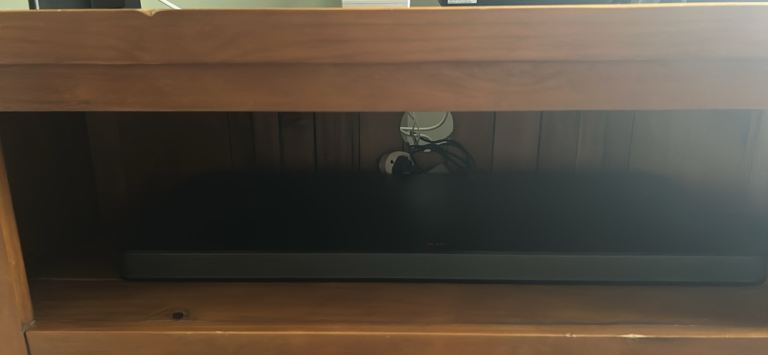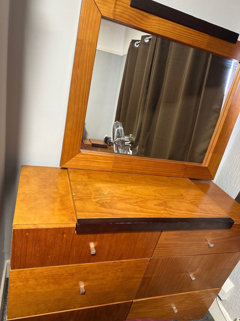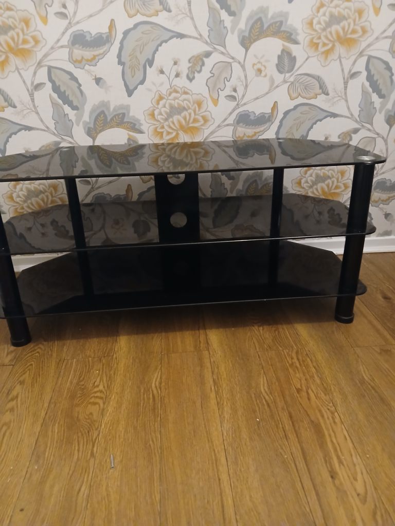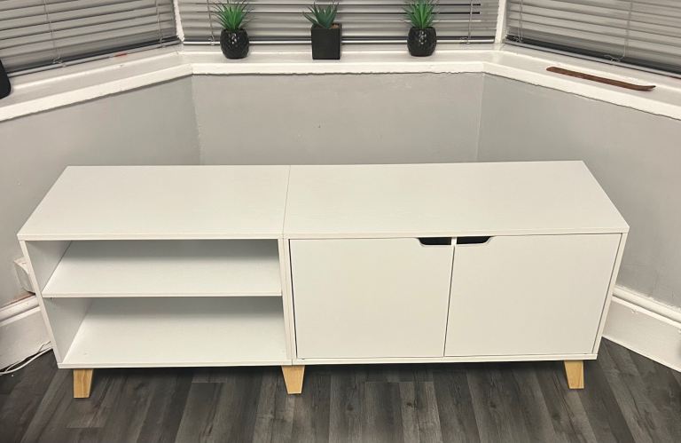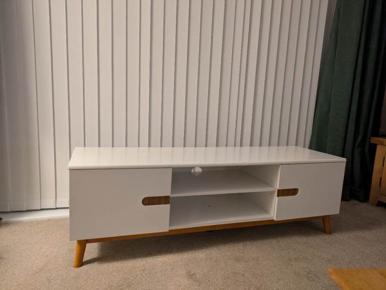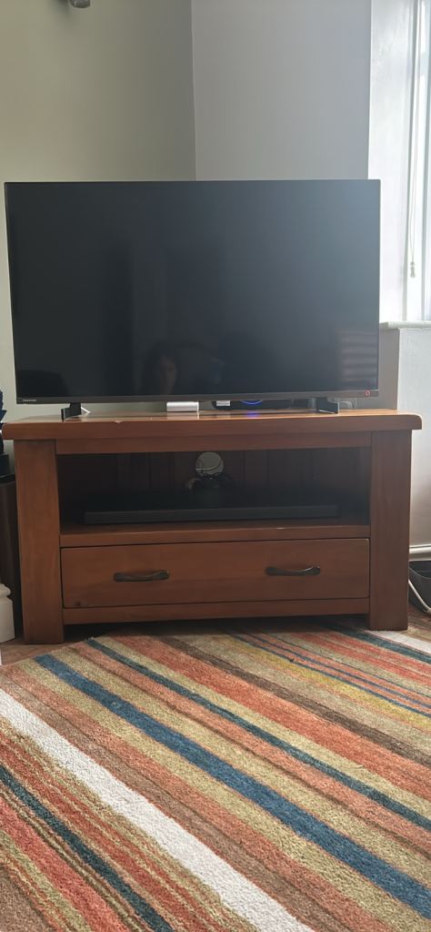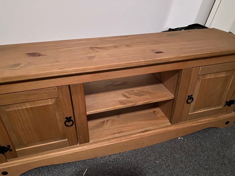 Solid pine TV unit. A couple of imperfections (as photographed) which were present when we bought it.