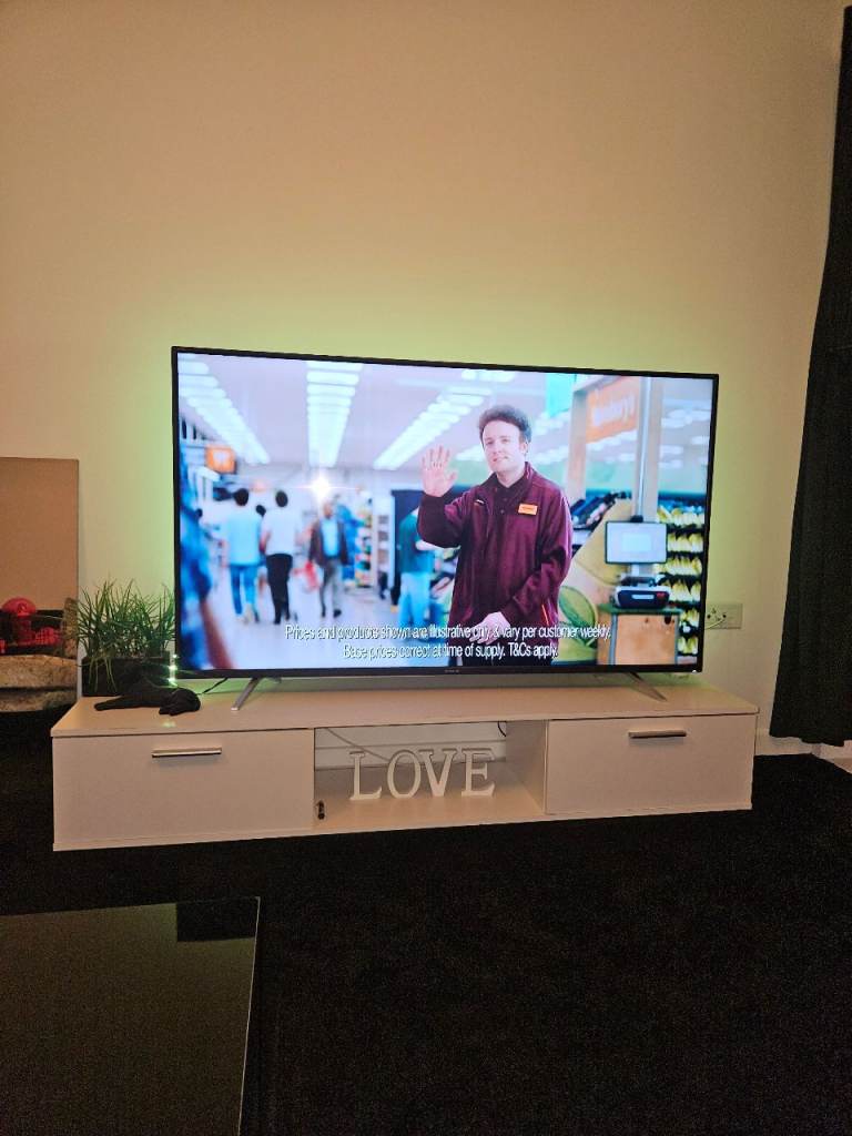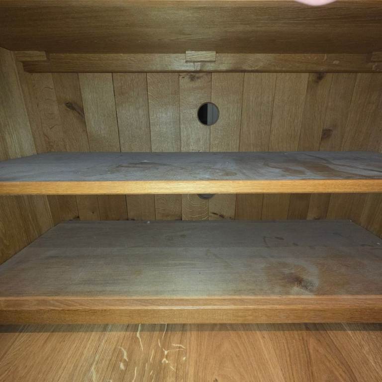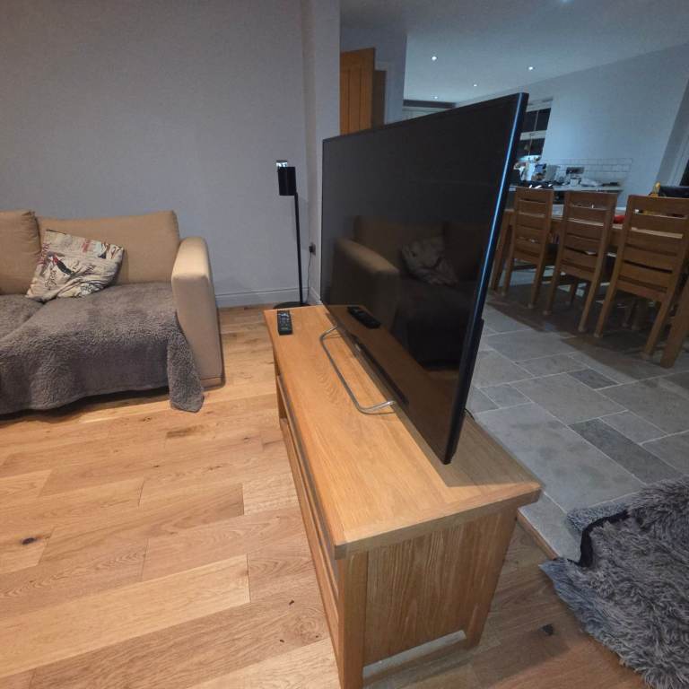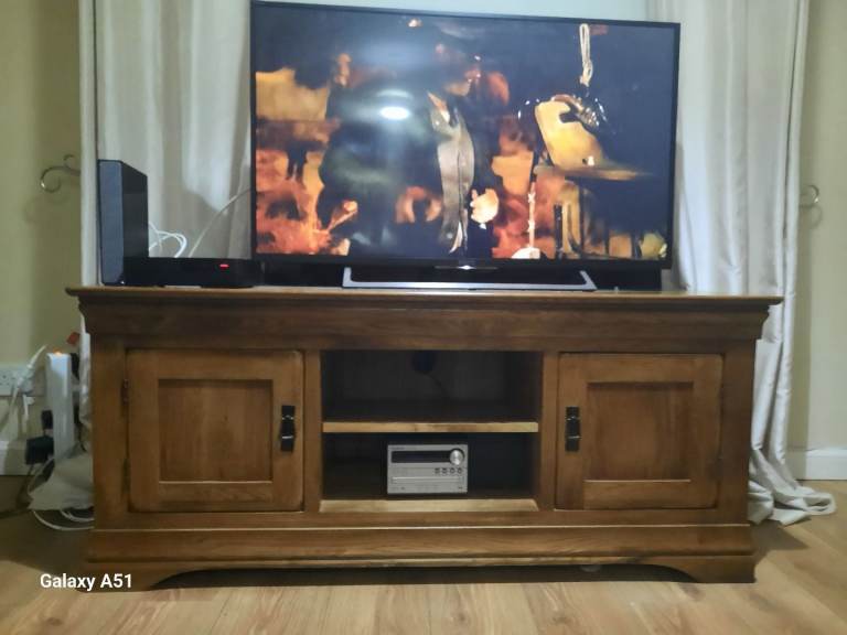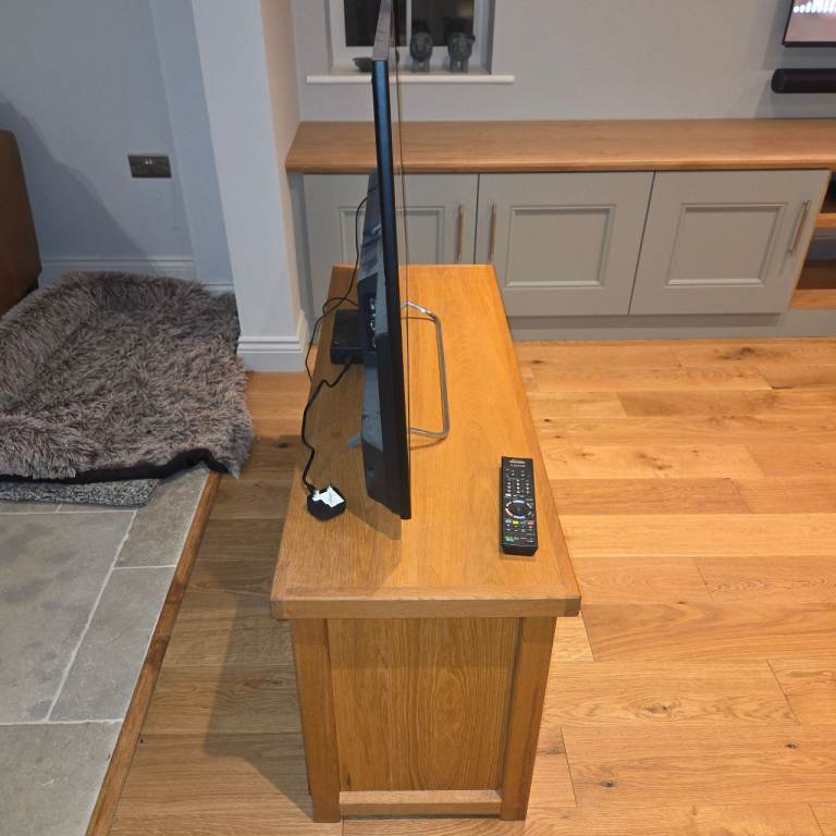 For sale this bespoke hand made quality oak TV and audio cabinet. L110cmXD40cmXH56cm. Perfect condition. TV is available to (£50)