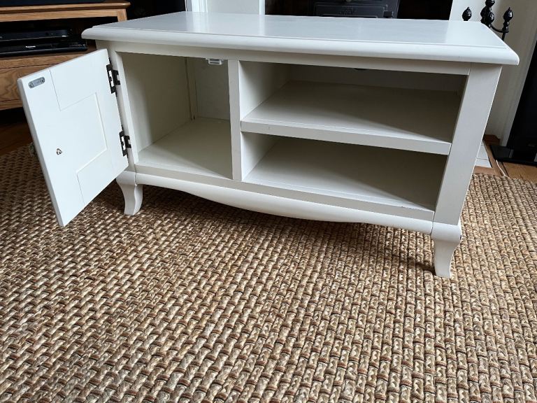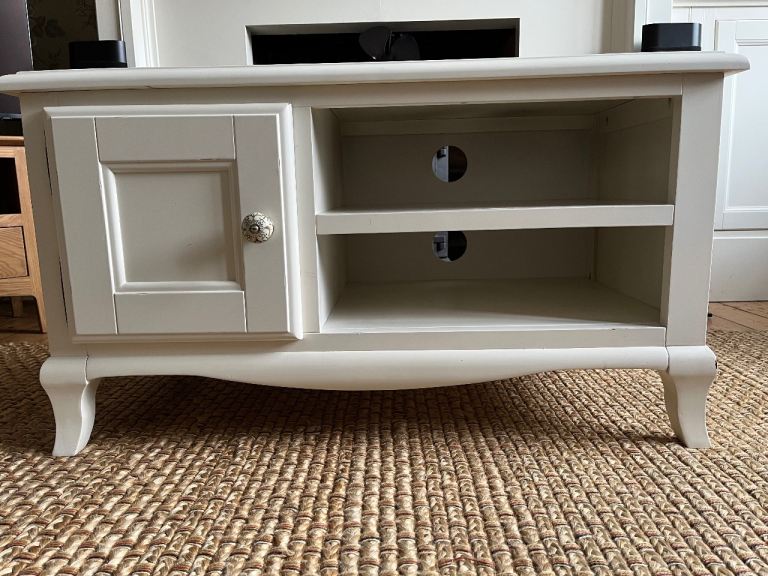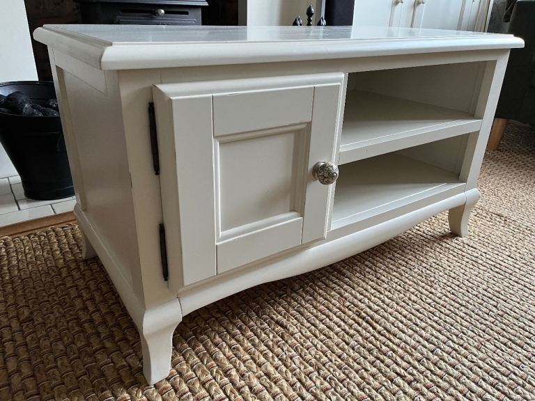 tv unit, internal shelf and small door for storage. cream/off-white shabby-chic finish