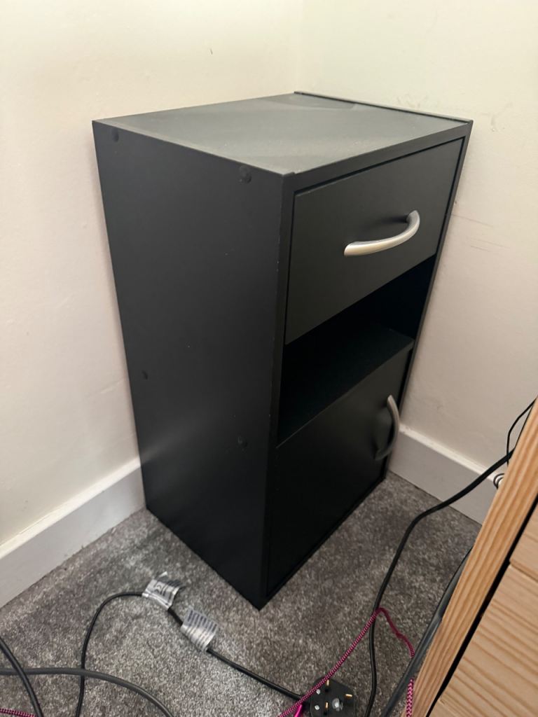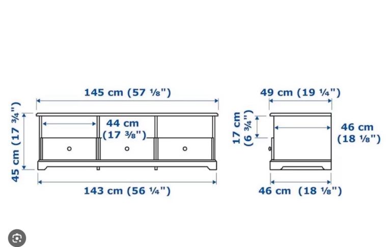 Excellent condition, satin finish, very solid, 3 shelves plus 3 soft-close drawers, plenty of room for a large TV, soundbar, Blu-ray player etc. Pre-cut holes for cable management. Selling due to house move. Postcode comes up as Ballymena but is actually Cushendun.