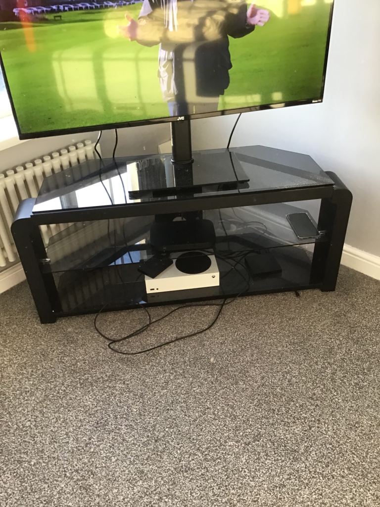 Solid oak TV cabinet, excellent condition, has 2 drawers and shelves, measurements L120cm, d40cm, h53cm, free local delivery elsewhere for fuel cost.
