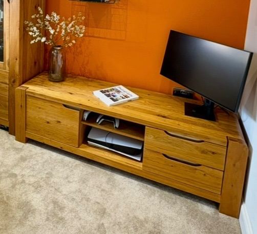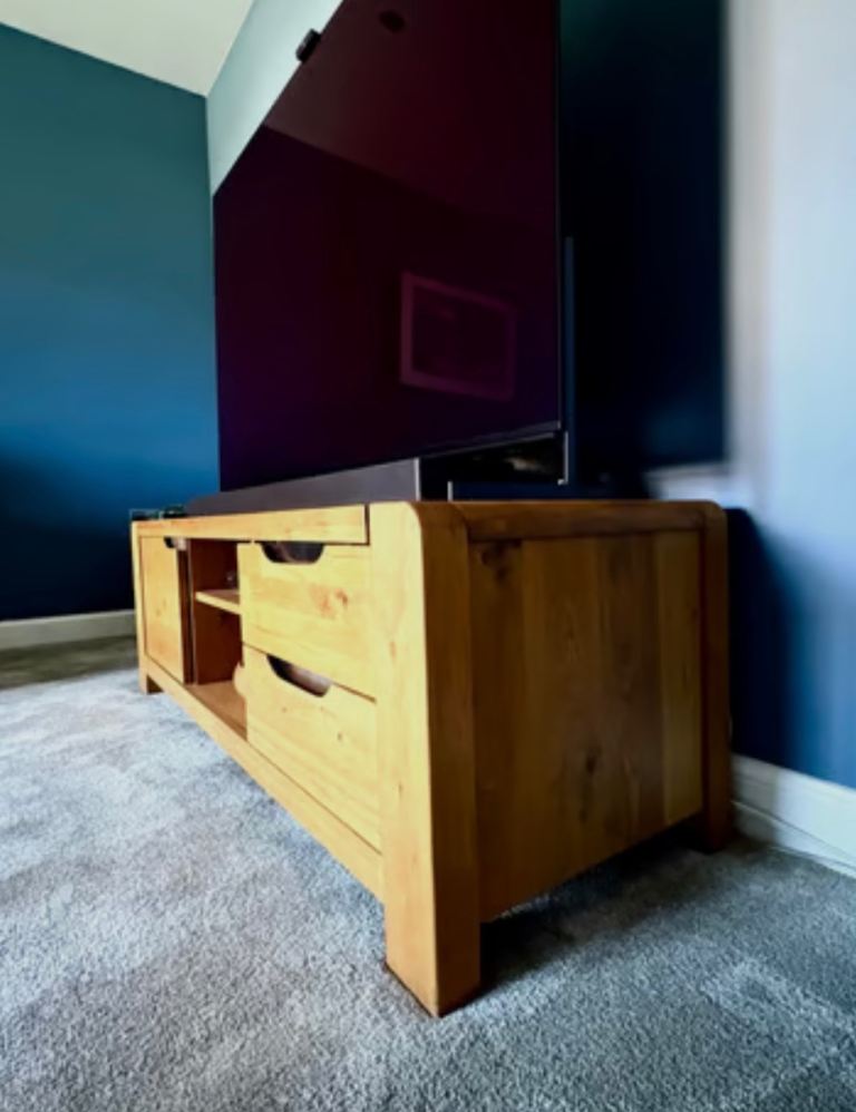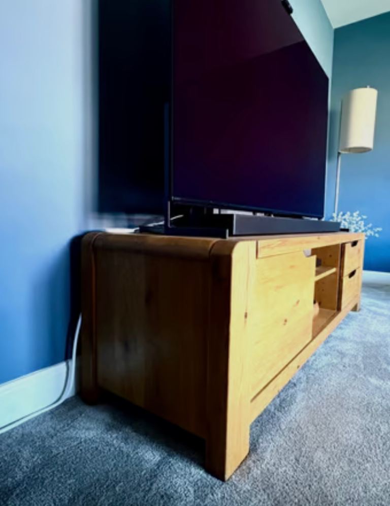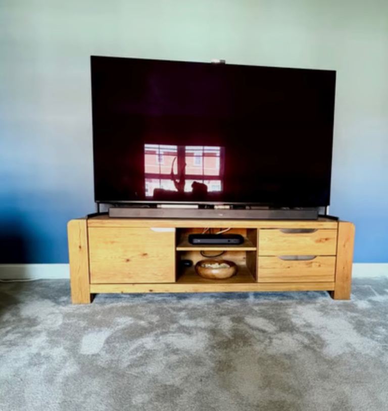 Selling in very good condition a solid oak tv cabinet purchased from Barker and Stonehouse.