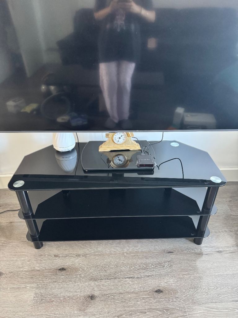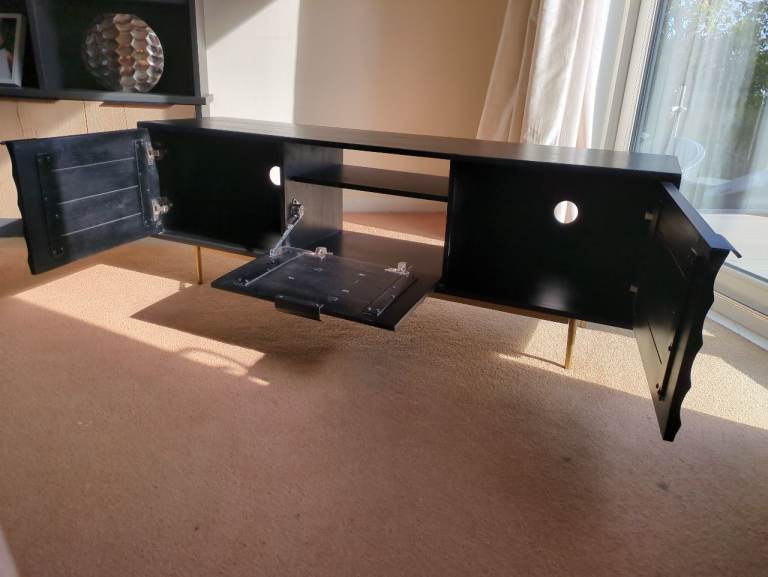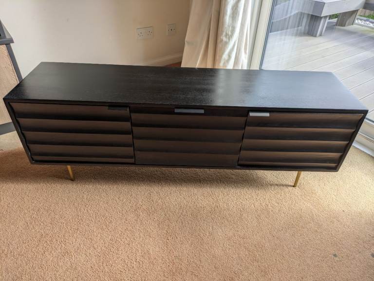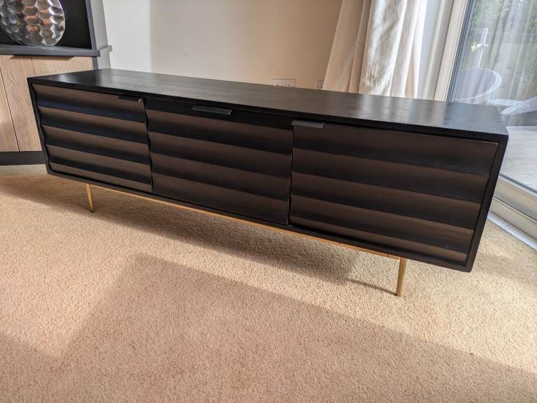Swoon TV Cabinet (Katana) in Black Mango Wood & Solid Brass. Worth £500+ new. No longer required due to renovation. Dimensions 148cm wide x 50cm high x 38cm deep (38cm high without legs).