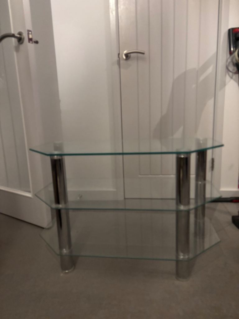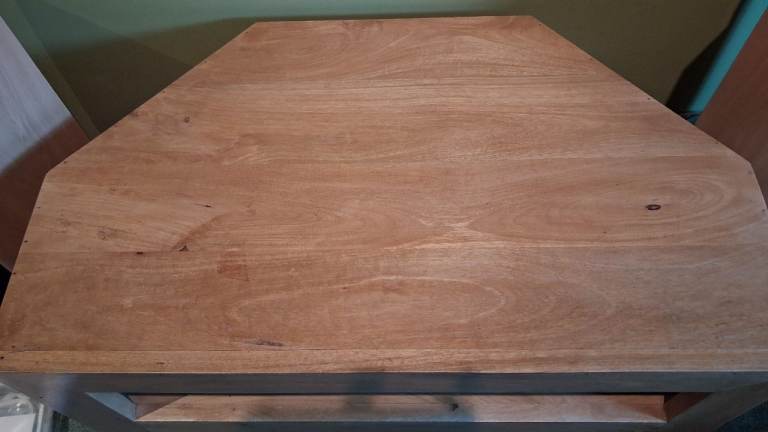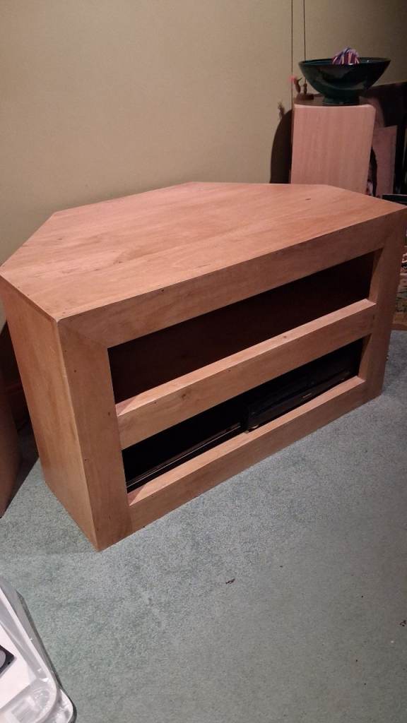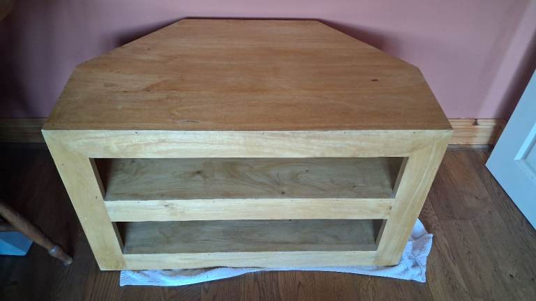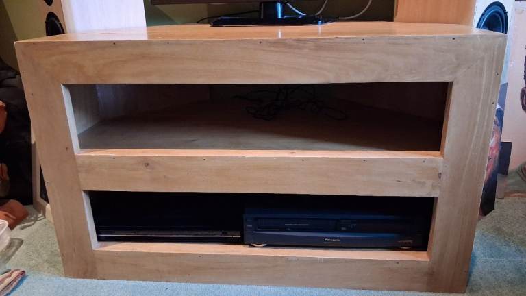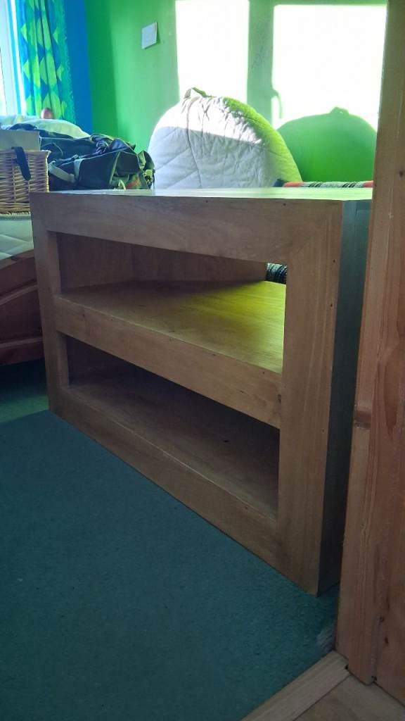 Mango wood TV/Stereo two shelved freestanding corner unit.