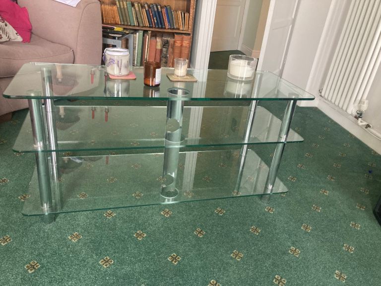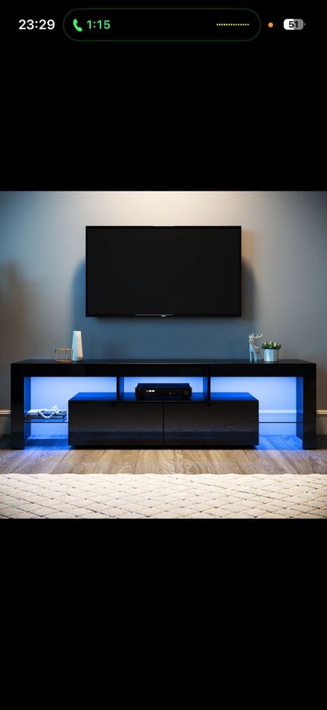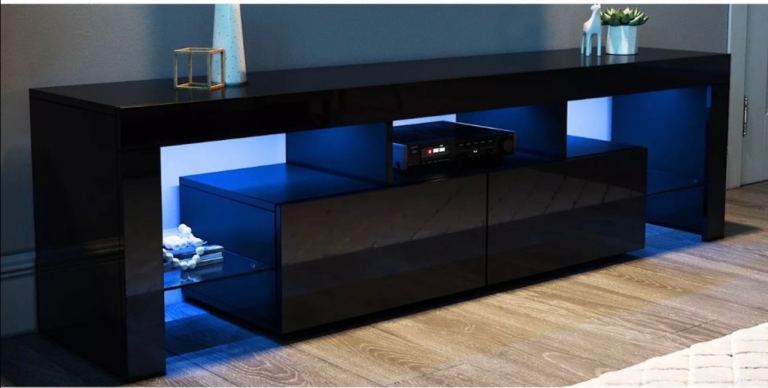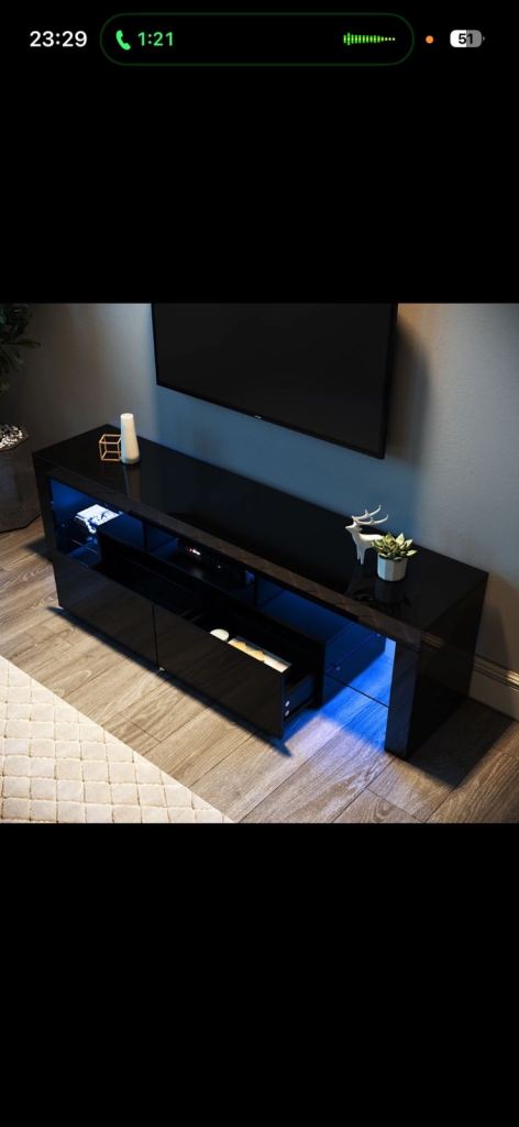 Selling my tv stand due to moving and don’t have room for it, I only bought it in June, payed £120 for it so brand new, it’s clean, no marks, it has different changing colour led lights with remote, has 2 storage bits at the front and 2 glass stands 1 at each side as you can see in the pictures, need it gone asap, can deliver but collection would be better, £80 or ono