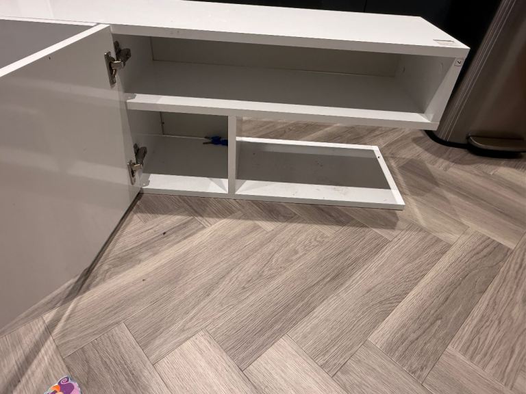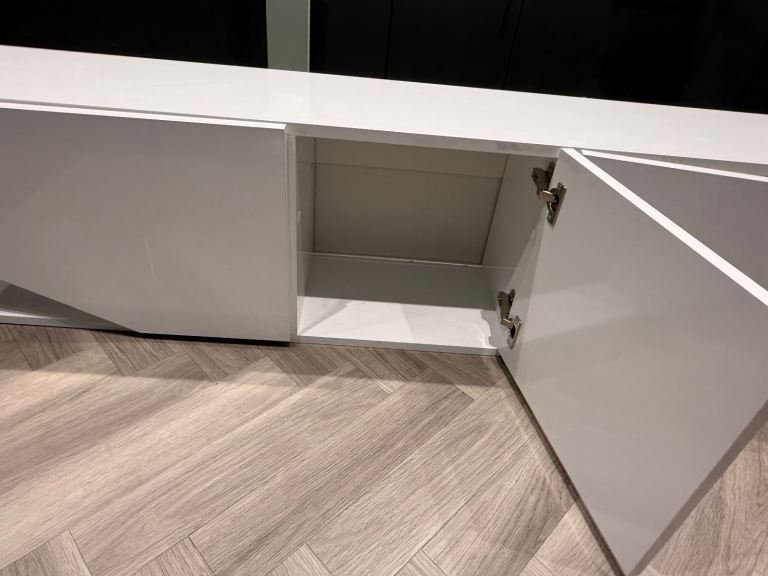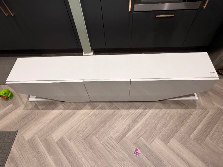 Lovely white tv stand for up to 75 inch tv.