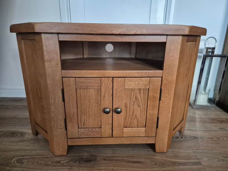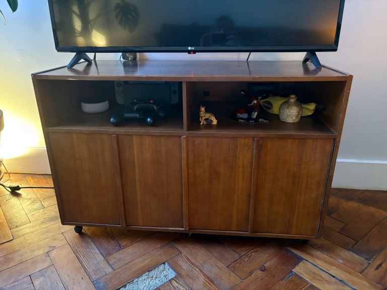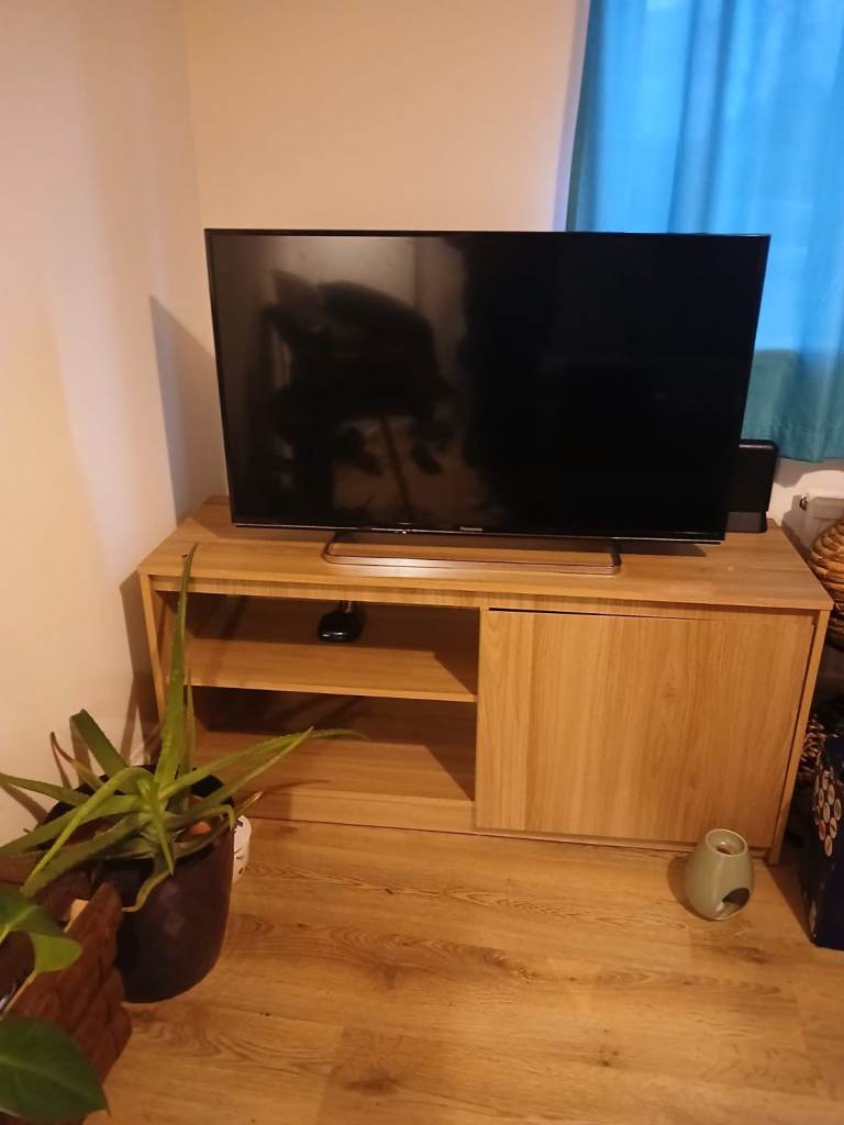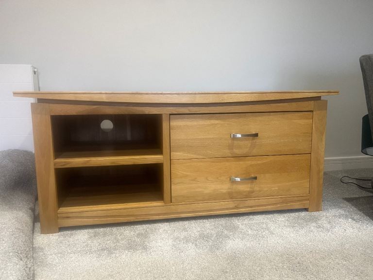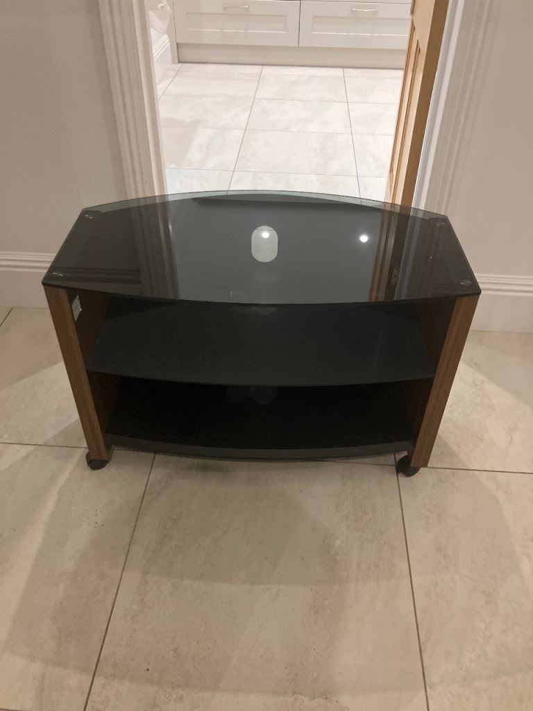 Used TV Stand, has scratches but is very very sturdy. L-23.5in W-17.5in H-22in
