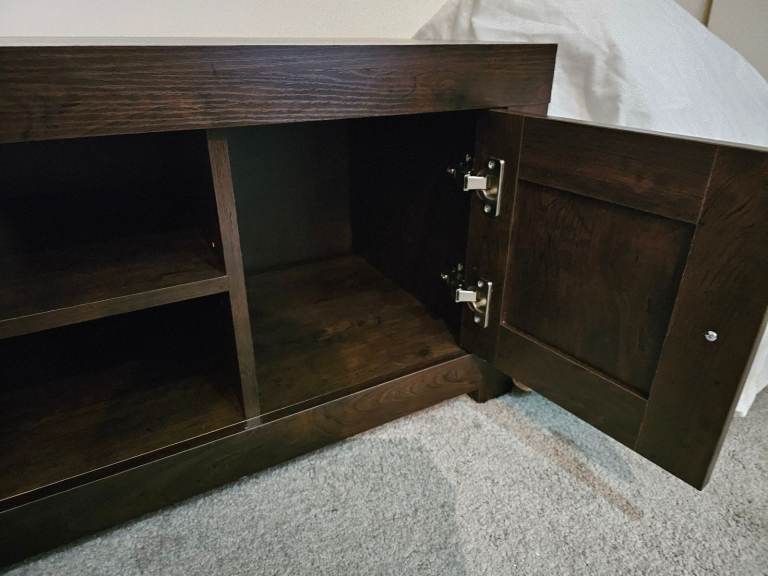 50 inch Walnut TV Unit. Bought from Argos and selling as we have a bigger TV so no longer required. In excellent condition. Just the one small chip mark as shown in the photo. It is hardly noticeable when you see the stand in person.